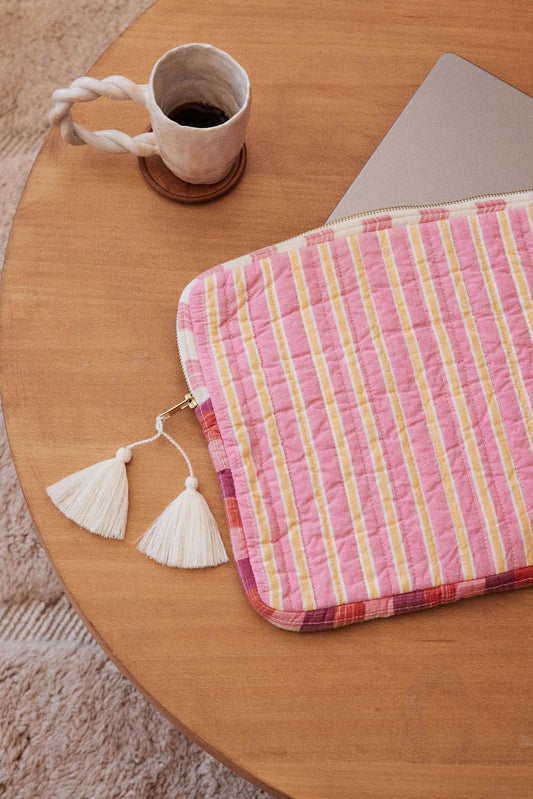 Laptop Pouch Hoa - Cream Sunset Checks - Pink Gelato Stripes