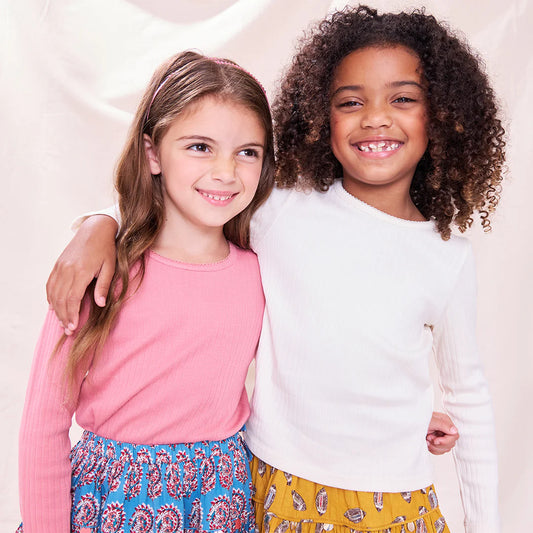 Our sunny collection of bright block prints, vintage-inspired patterns and not-so-basic basics will have you walking on air from park to playdate, and beach to barbecue. We believe that when children love and feel comfortable in their clothing, it boosts their confidence and sparks imagination, creativity, and joy.