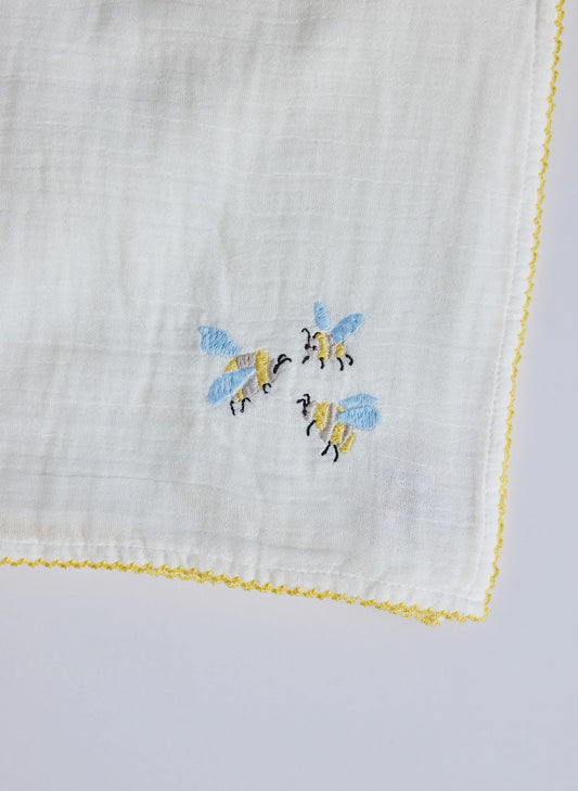 Bumblebee Embroidered Shawl Blanket - White