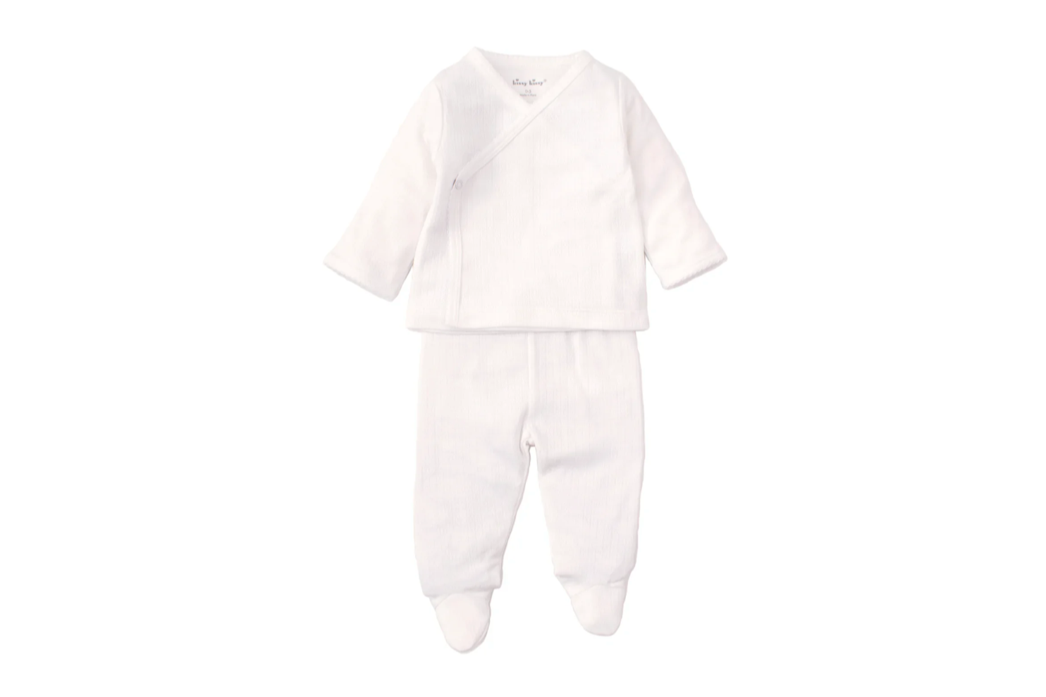 Outfit your little one in our white pointelle two piece set, crafted from the finest Pima cotton. Our luxurious fabric will feel cool and comfortable against delicate skin. Set includes pullover tee and coordinating pant.