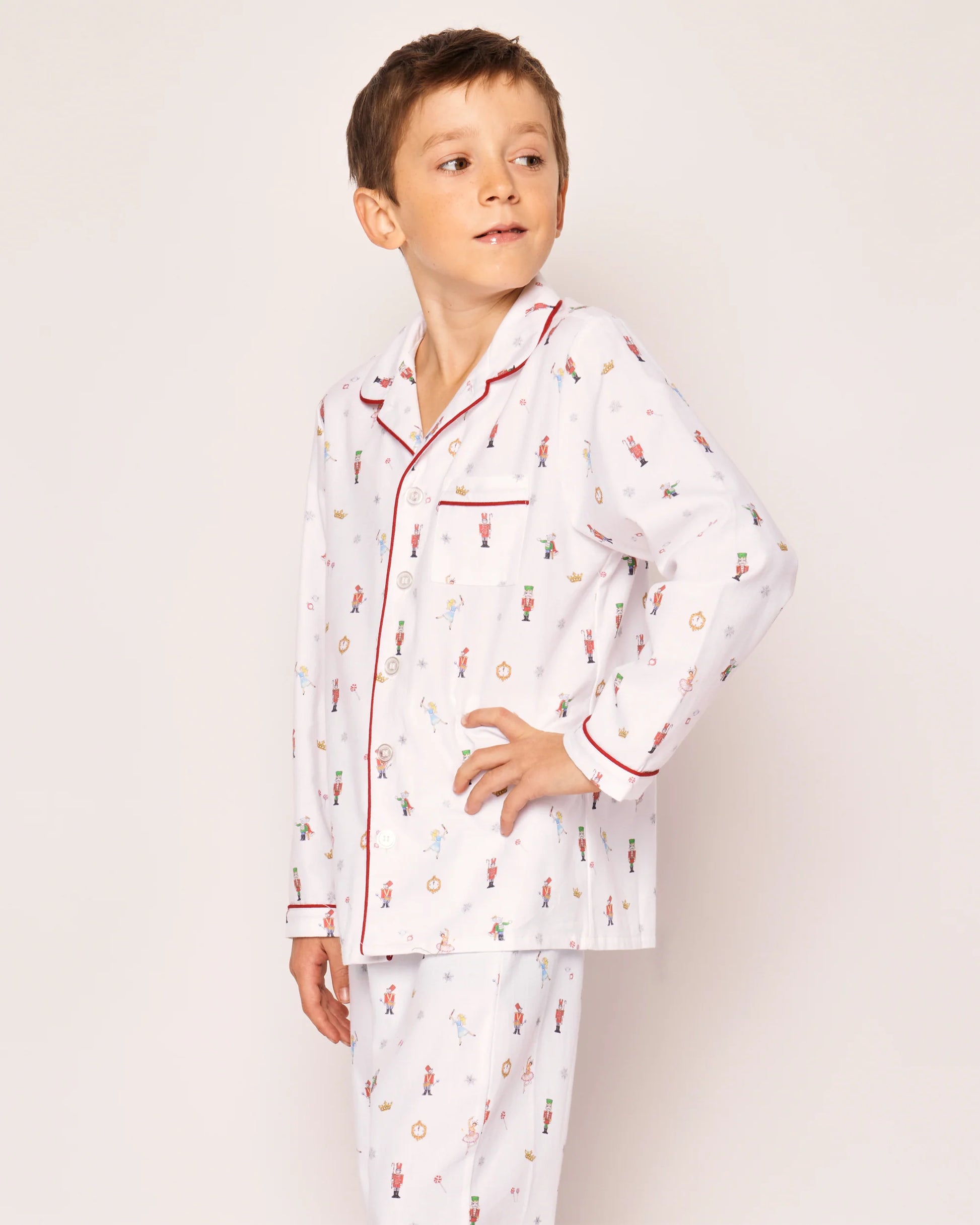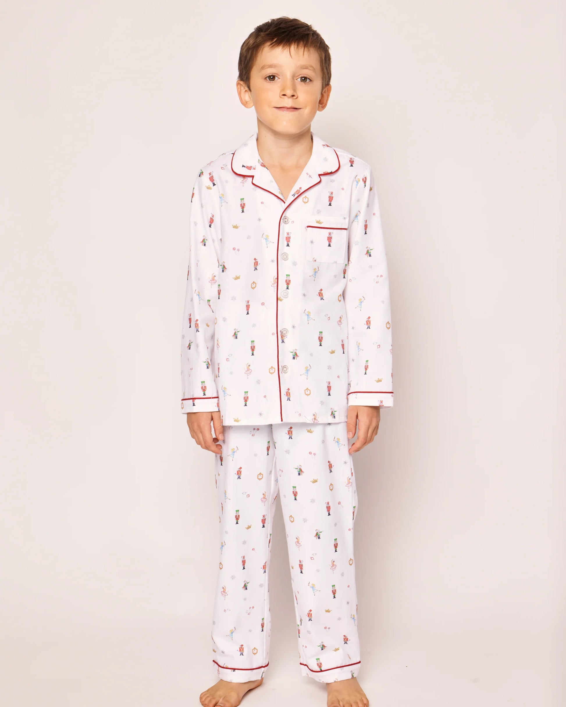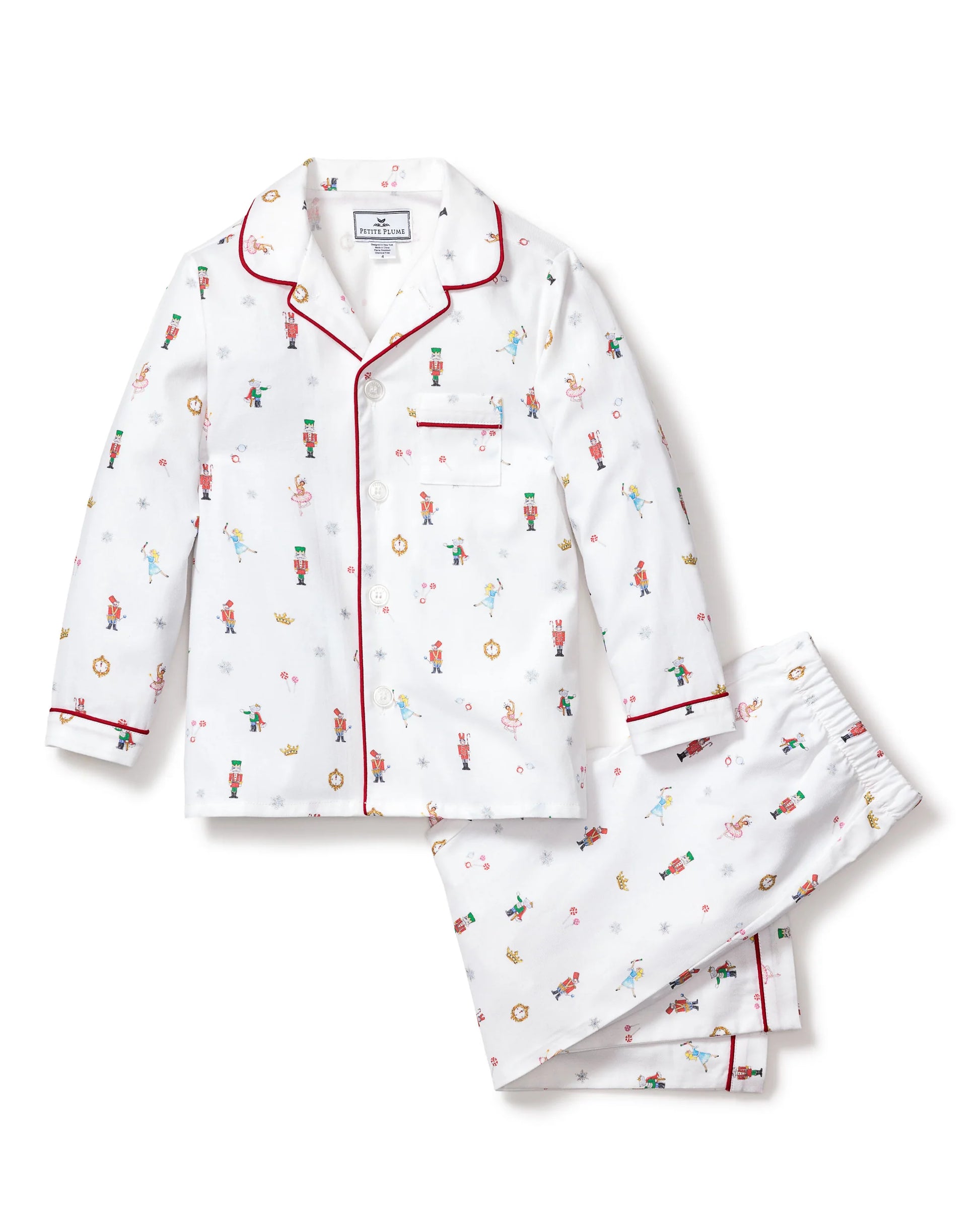 Hear the Tchaikovsky score and prepare for the arrival of the Sugar Plum Fairy. Illustrated Nutcrackers, toy soldiers and ballerinas alternate with sweet candy and chiming clocks in this whimsical pajama set. This classic twill pajama set is accented with piping and finished with logo buttons.