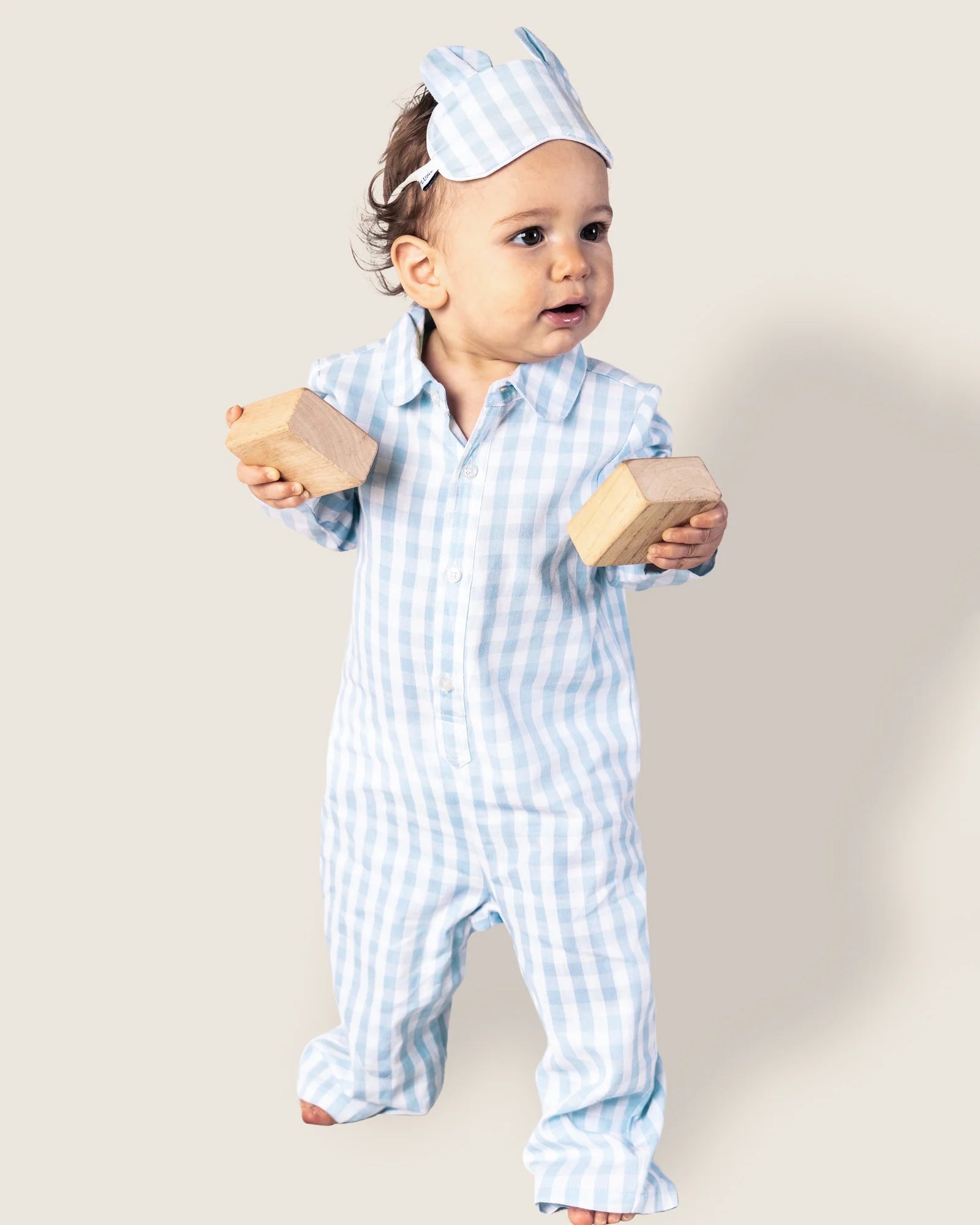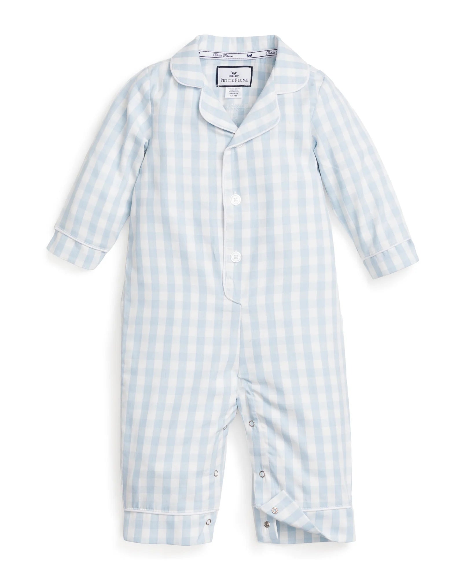 Gingham print dating back to the 17th century is a staple. Our Romper is made of the softest brushed fabric which will allow your little one to walk, crawl, or relax in comfort. Monogramming is placed neatly on the chest for a timeless, personalized touch.