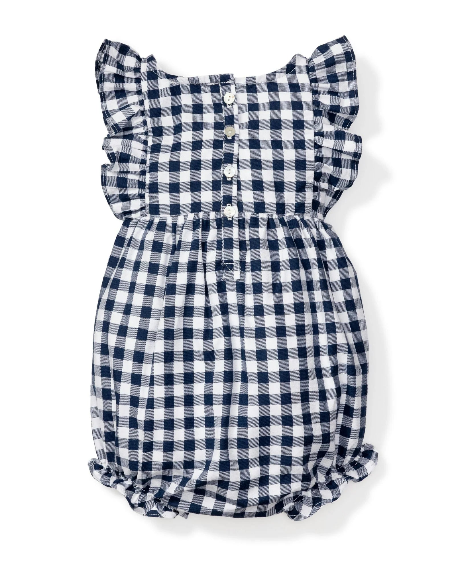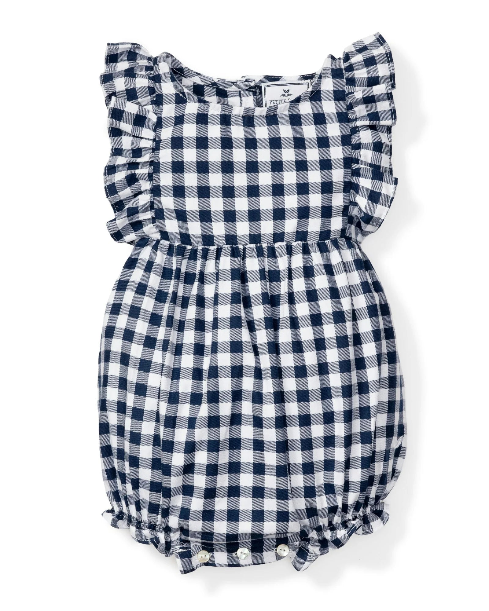 This darling romper with sweet ruffle hems and sleeves, and delicate pearl buttons, is reminiscent of the Victorian era. The sleepwear is made from the finest quality yarn-dyed cotton and blended with just enough inherently flame retardant fiber to allow it to pass strict CPSC flame retardant laws without using harmful chemicals. The fabric is brushed for added softness, making the sleepwear feel absolutely luxurious, getting cozier after each wash. In our luxurious sleepwear, your little one will be tucked in love and off to dreamland. Bonne nuit.