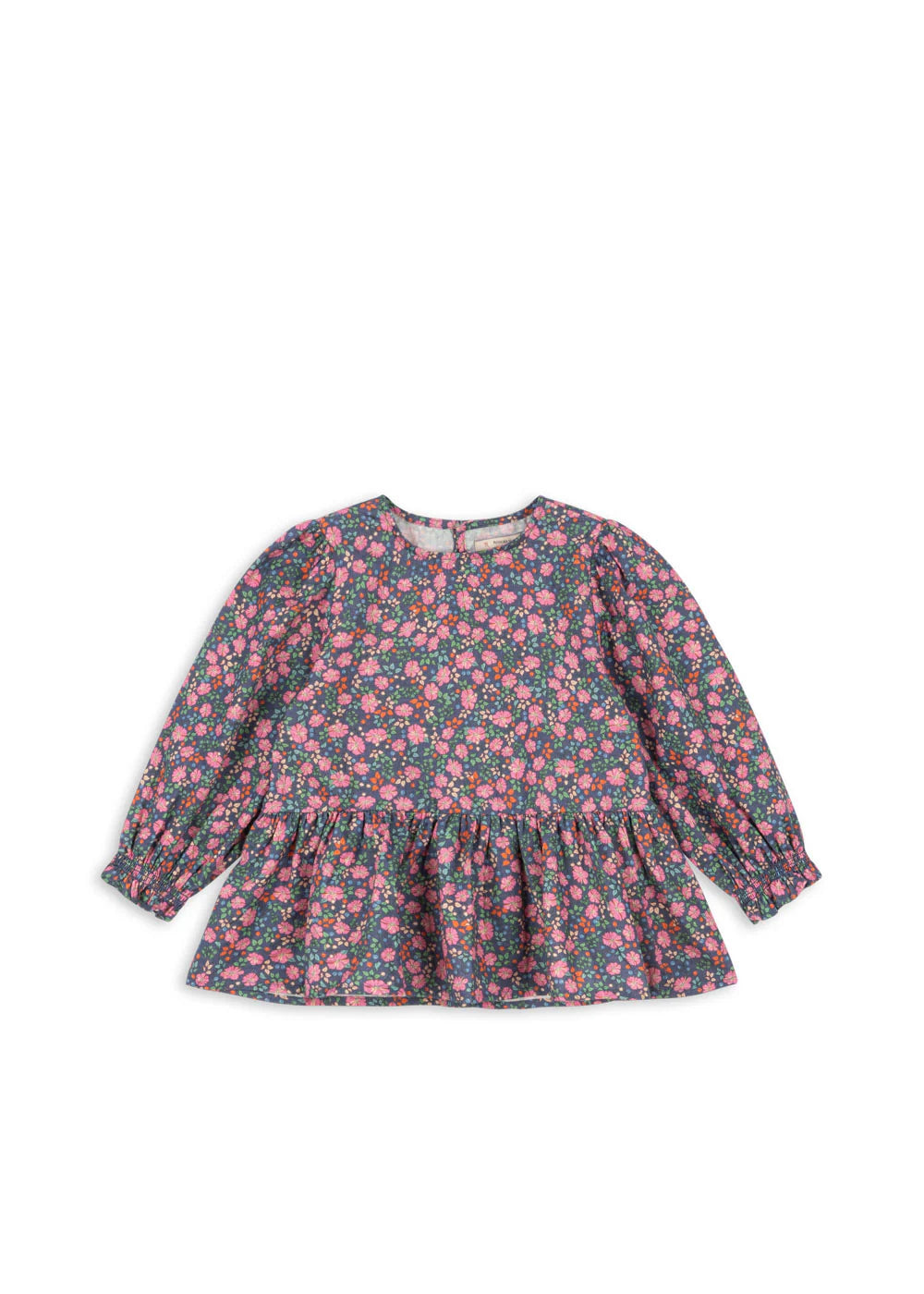 Blouse finished in a soft woven cotton fabric with a cute crinkle effect. Closes with buttons at the neck.