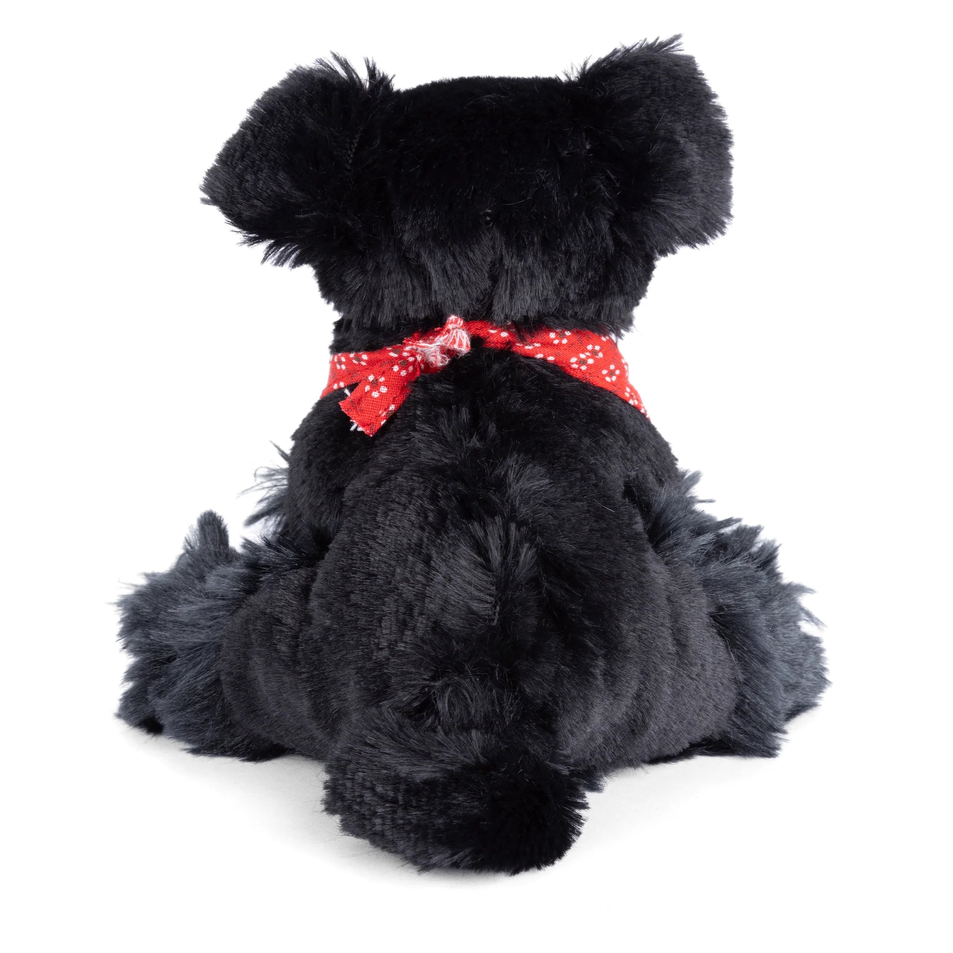 Wag along with Baby Elvis, one of our pet companions. This plush dog has a soft, black coat and a fun red bandana. Baby Elvis is one fun schnauzer pup and is ready to play fetch with you all day long.