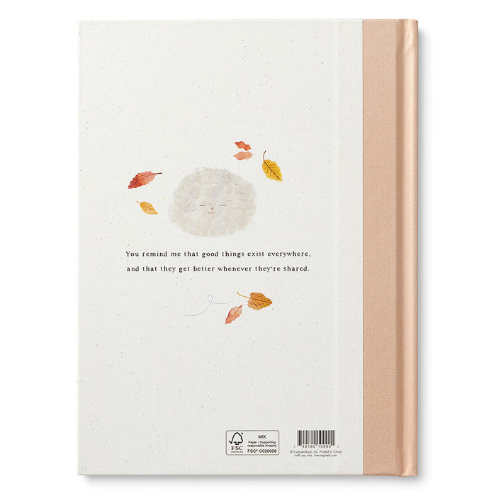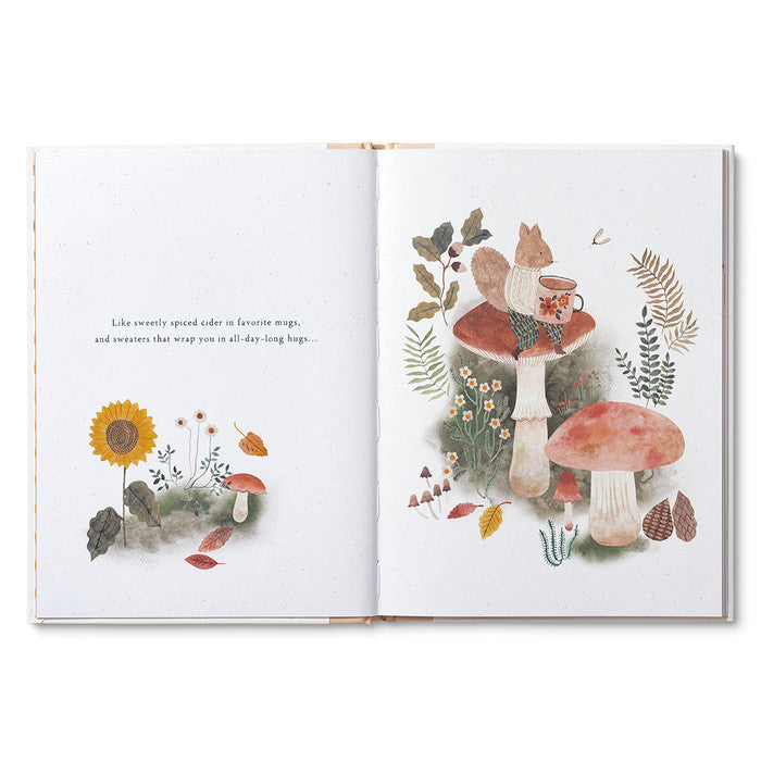 An adorable squirrel adventures through these pages enjoying everyday delights—from sipping piping-hot cider to watching clouds in an autumn sky—each experience made better by the company of a faithful friend. The book’s sweet, poetic words create a special birthday present, Thanksgiving host gift, or appreciation gift for a person who’s one of a kind.