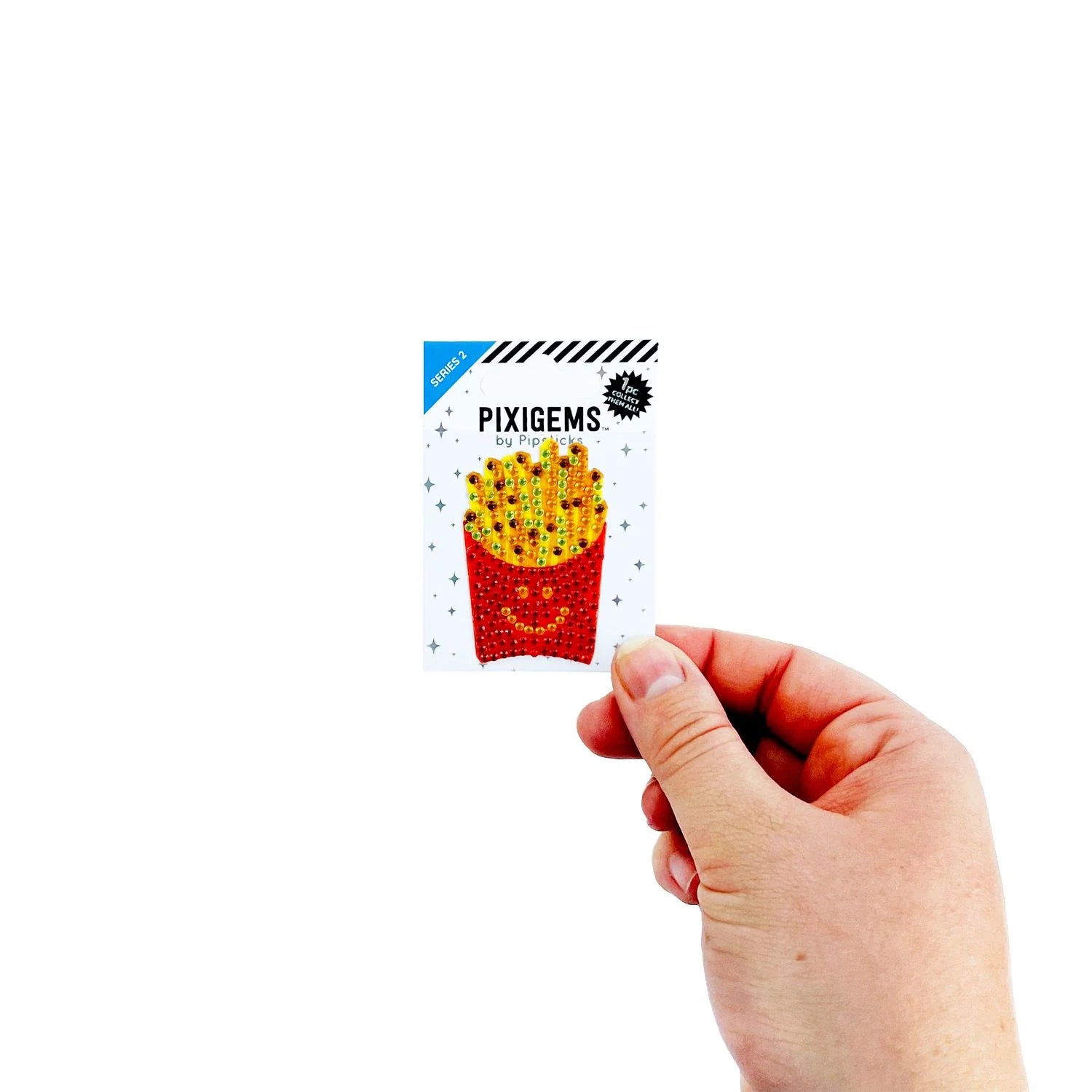 Includes one 2" x 2" Finley French Fries Pixigem sticker & collectors card to uncover it's special power.