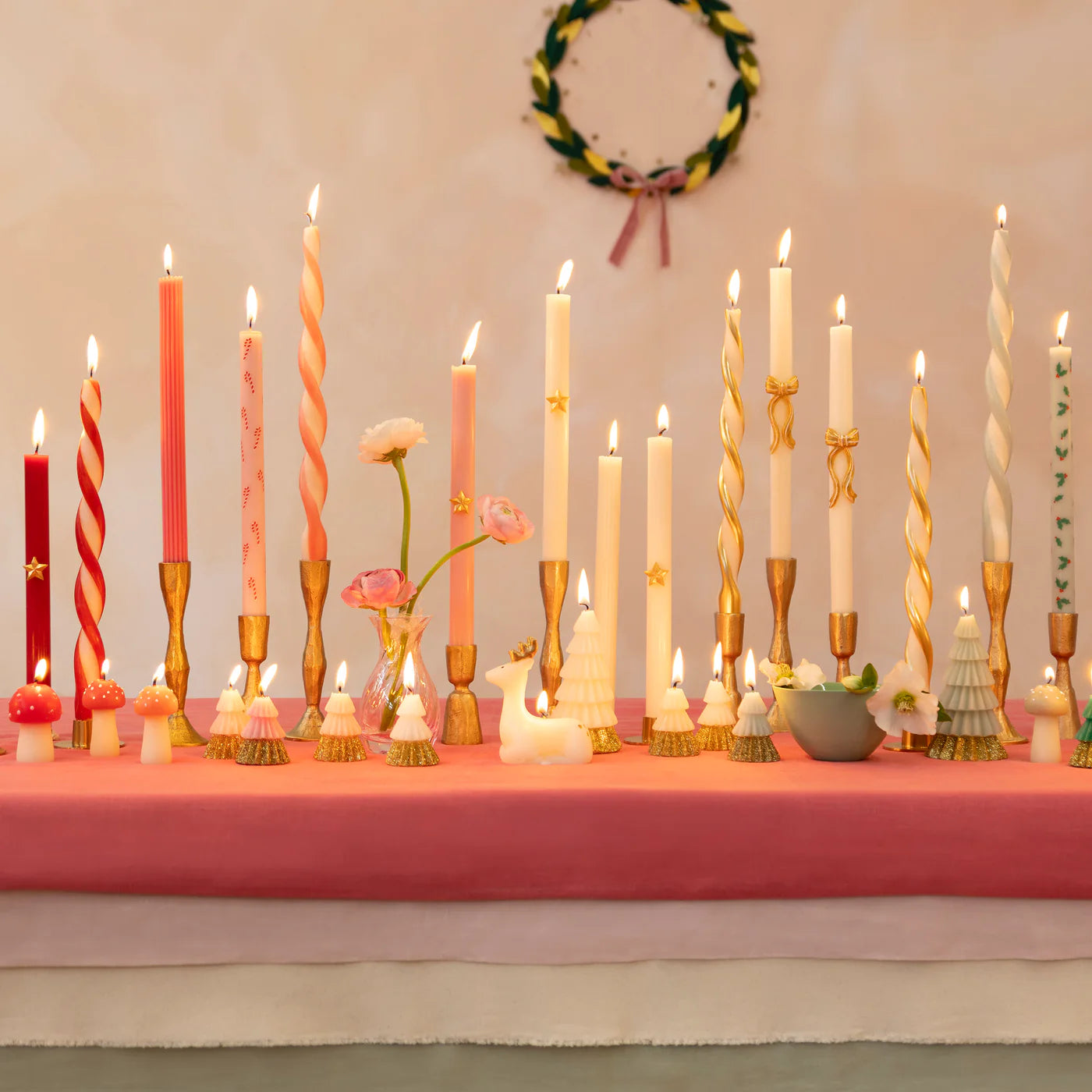 This beautiful candle collection, created as part of a collaboration with Liberty, will add effortless elegance to your Christmas decor. Eight ridged candles, in four joyful colors with gold wax star embellishments, are packaged in a gift box adorned with a radiant Liberty star print on the outside, and pink and cream stripes on the inner. Berry red wicks add a charming touch, light for a soft glow, or reuse time and time again if not lit. Display individually or combine for a centerpiece of color. Perfect as a host gift or present for someone who adores statement table candles. Driven by discovery, Liberty has been home to the artistic shopper since 1875. Famed for its directional design and celebration of craftsmanship, its prints are created in the heart of London by the Liberty design studio.