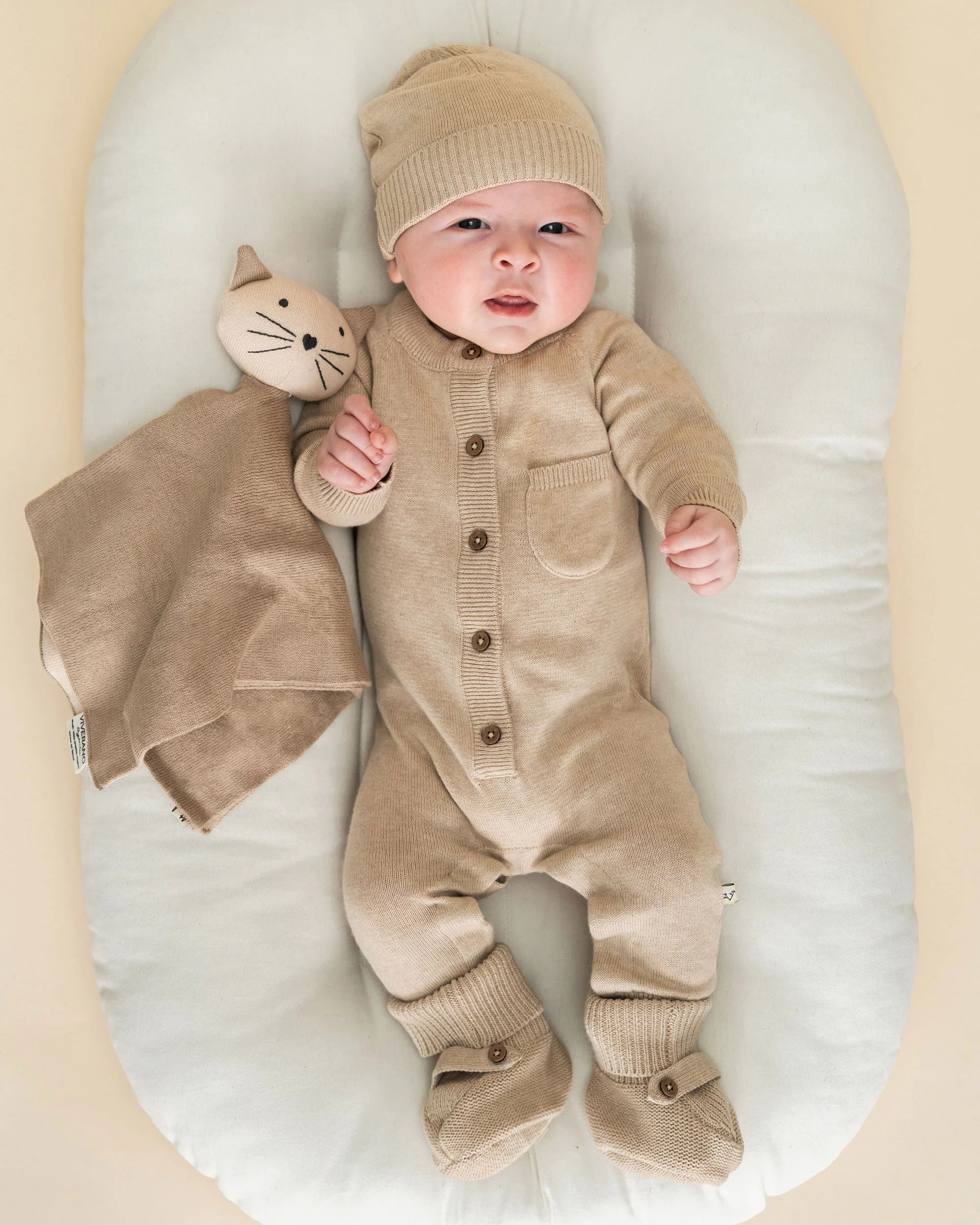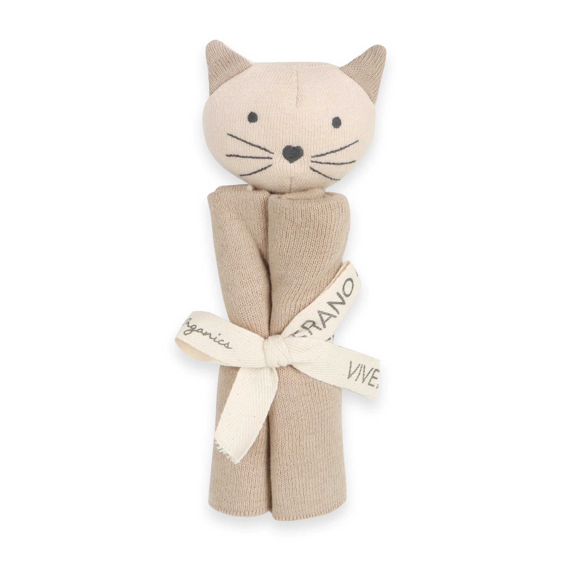 Organic Baby Lovey Security Blanket - Tan Kitty Cat