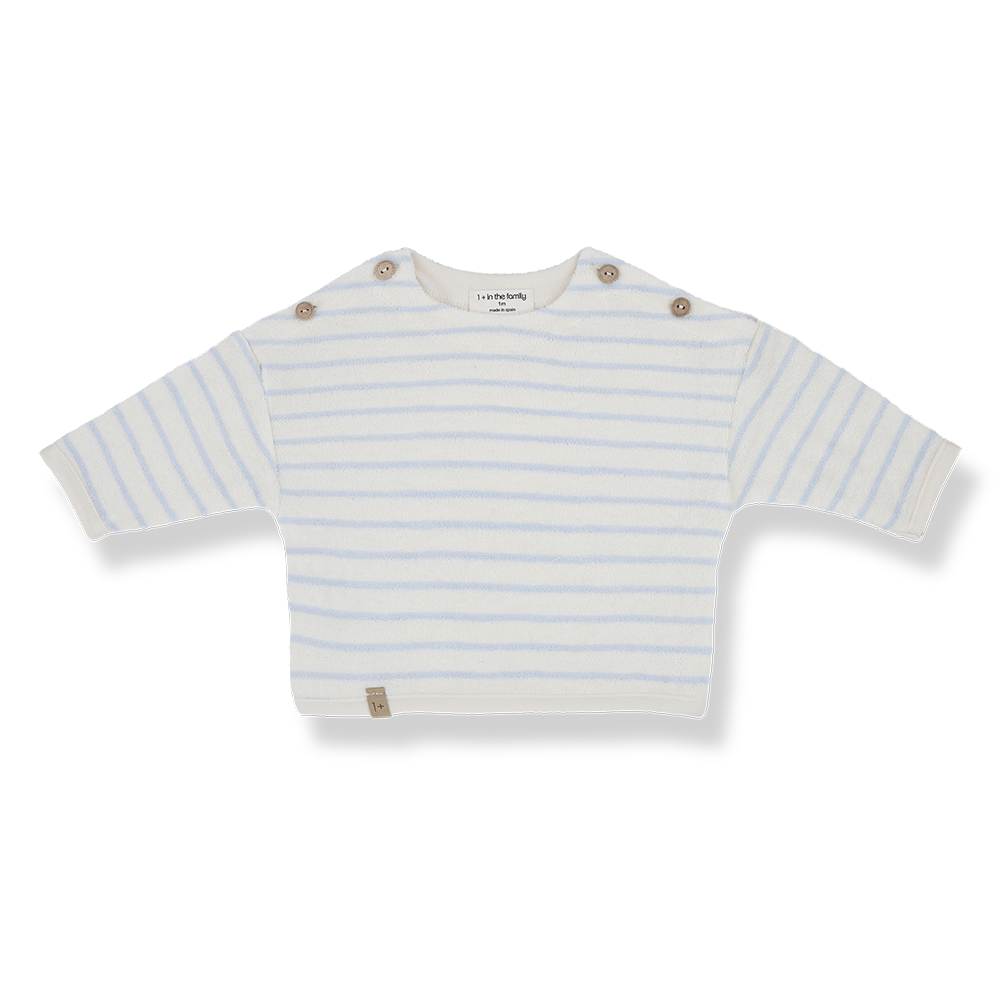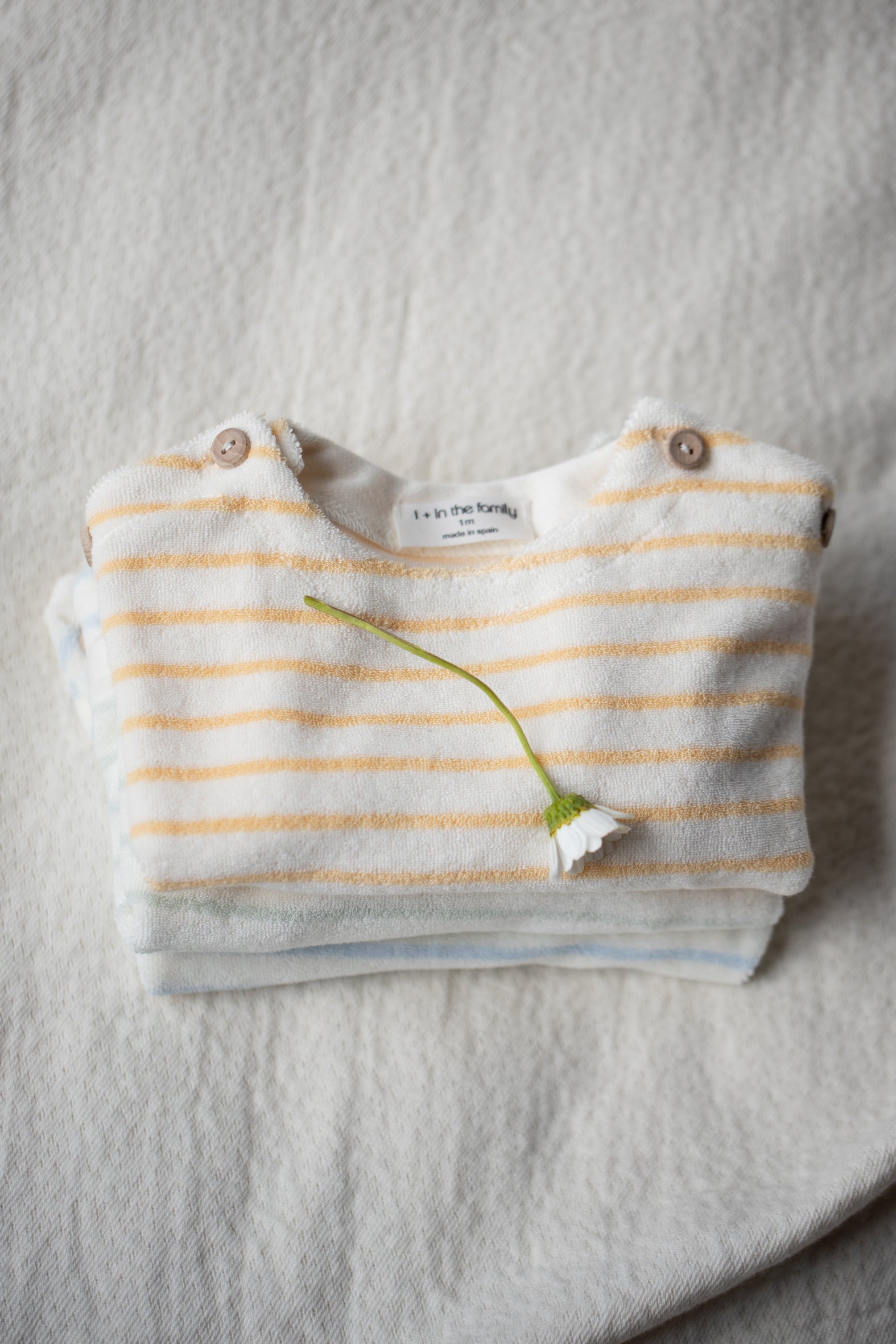 Keep your baby boy cozy and stylish in the Enzo terry cloth striped long sleeve top. Crafted from soft, breathable fabric, it provides gentle warmth and comfort for delicate skin. The classic striped design adds a timeless touch to everyday wear, making it perfect for both playtime and outings. Easy to layer and care for, this long sleeve top is a practical choice that combines comfort with charming style.
