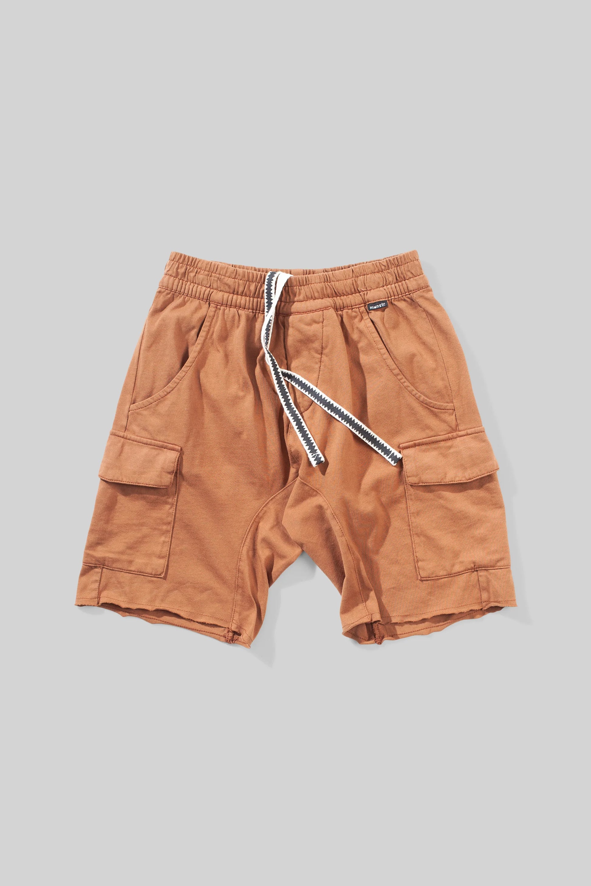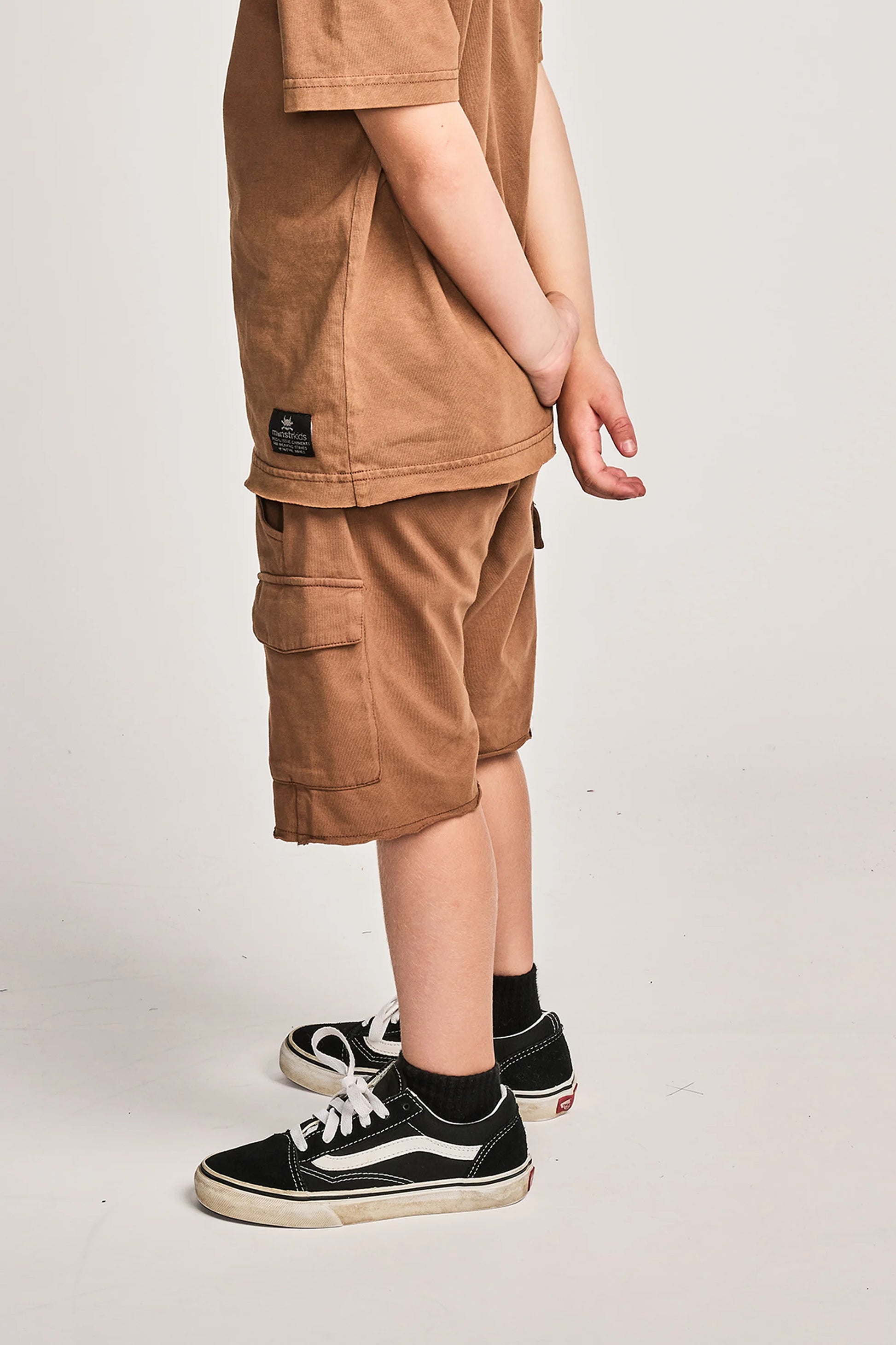 100% Cotton 220Gsm Jersey Cargo Short / Overdye and Enzyme Wash . Raw Hem