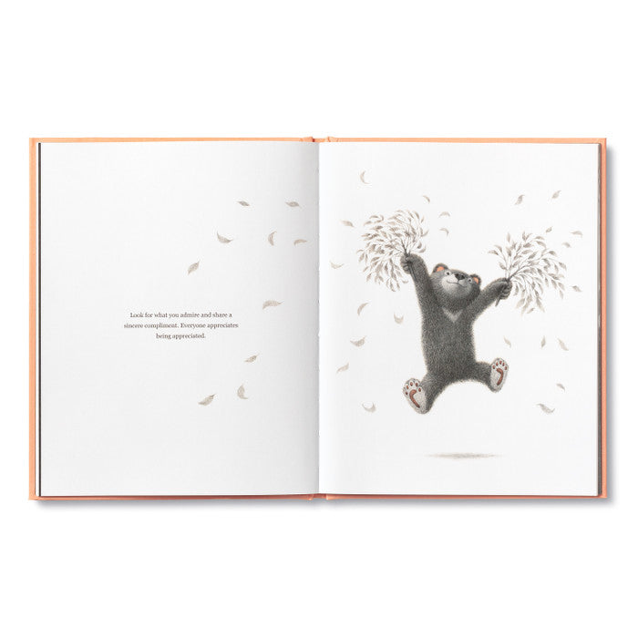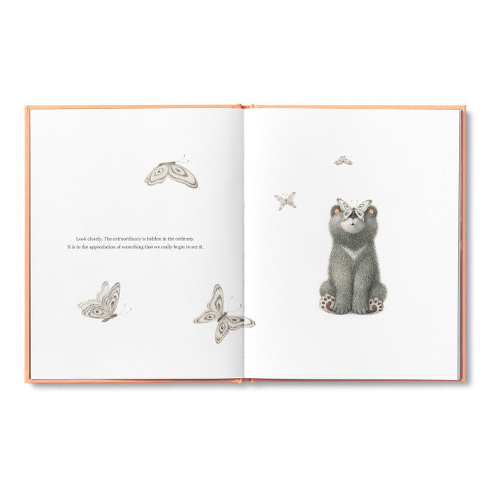Follow a wonder-struck bear cub on a day of adventure that includes dancing in the rain, gazing at gophers, and attempting handstands on the forest floor. Every page of this heartwarming book is an invitation to slow down, look around, and fully appreciate each tiny, miraculous moment. With magical simplicity, the book’s words of wisdom encourage happiness and personal growth at any age: