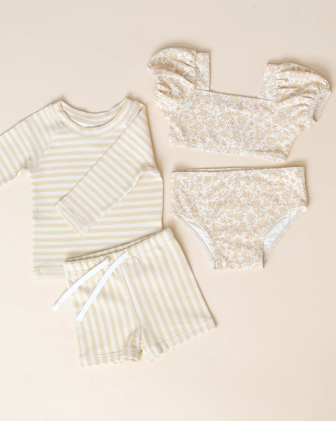 Featuring our 'yellow stripe' print - a warm yellow stripe for your little rays of sunshine.