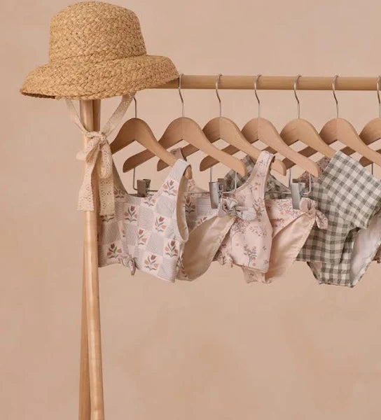 The Garden Hat is a charming woven straw hat perfect for children's tea parties and outdoor fun. Its bent brim offers gentle sun protection while adding a touch of elegance. The under-chin lace ties ensure the hat stays securely in place as your little one enjoys playtime. Light and breathable, this hat combines style and comfort for memorable sunny moments.