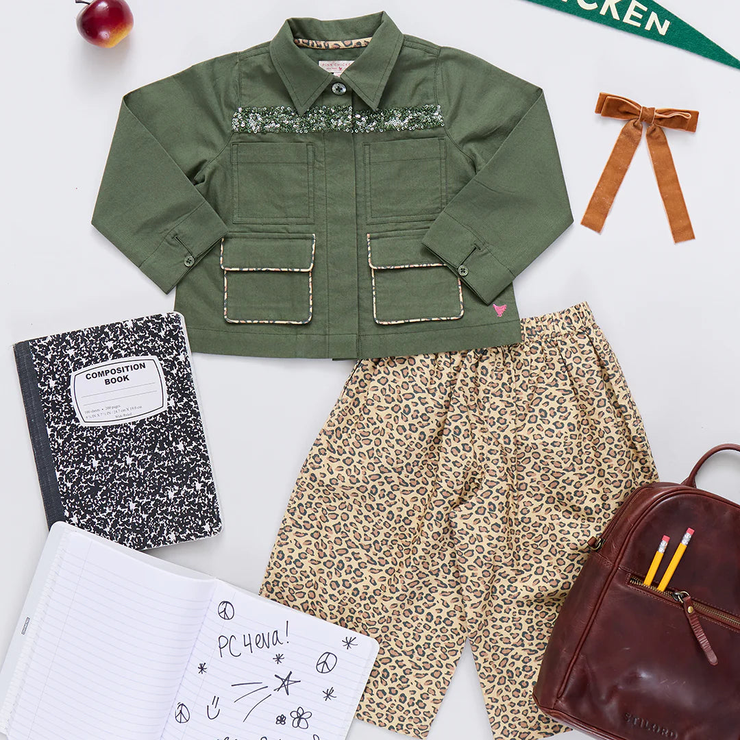 Fall Essential! This season our style staple, Girls Wylie Pant takes a walk on the wild side in our super fun Mini Leopard Print. This stylish bottom features a wide leg, an elastic waist, roomy side pockets and a chic wide hem at the ankle. Works well with our Organic Tees.