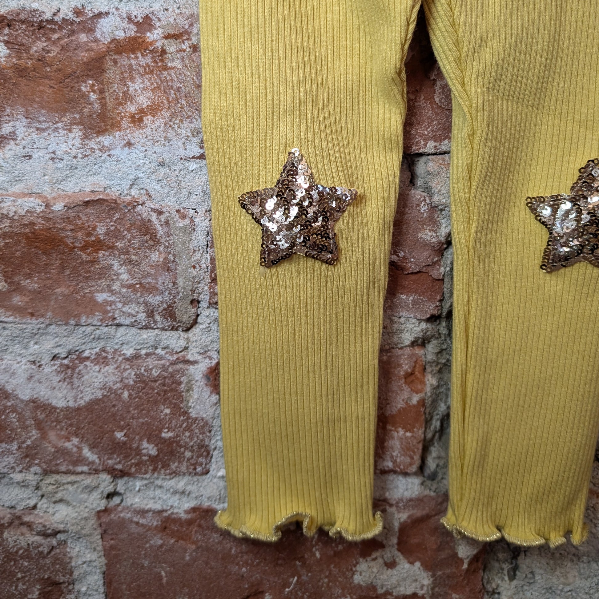 Shine bright with our Hailey Leggins! These playful yellow leggings feature sequin gold star knee patches that will add a touch of sparkle to any outfit. Stand out from the crowd with these unique, fun and stylish leggings.