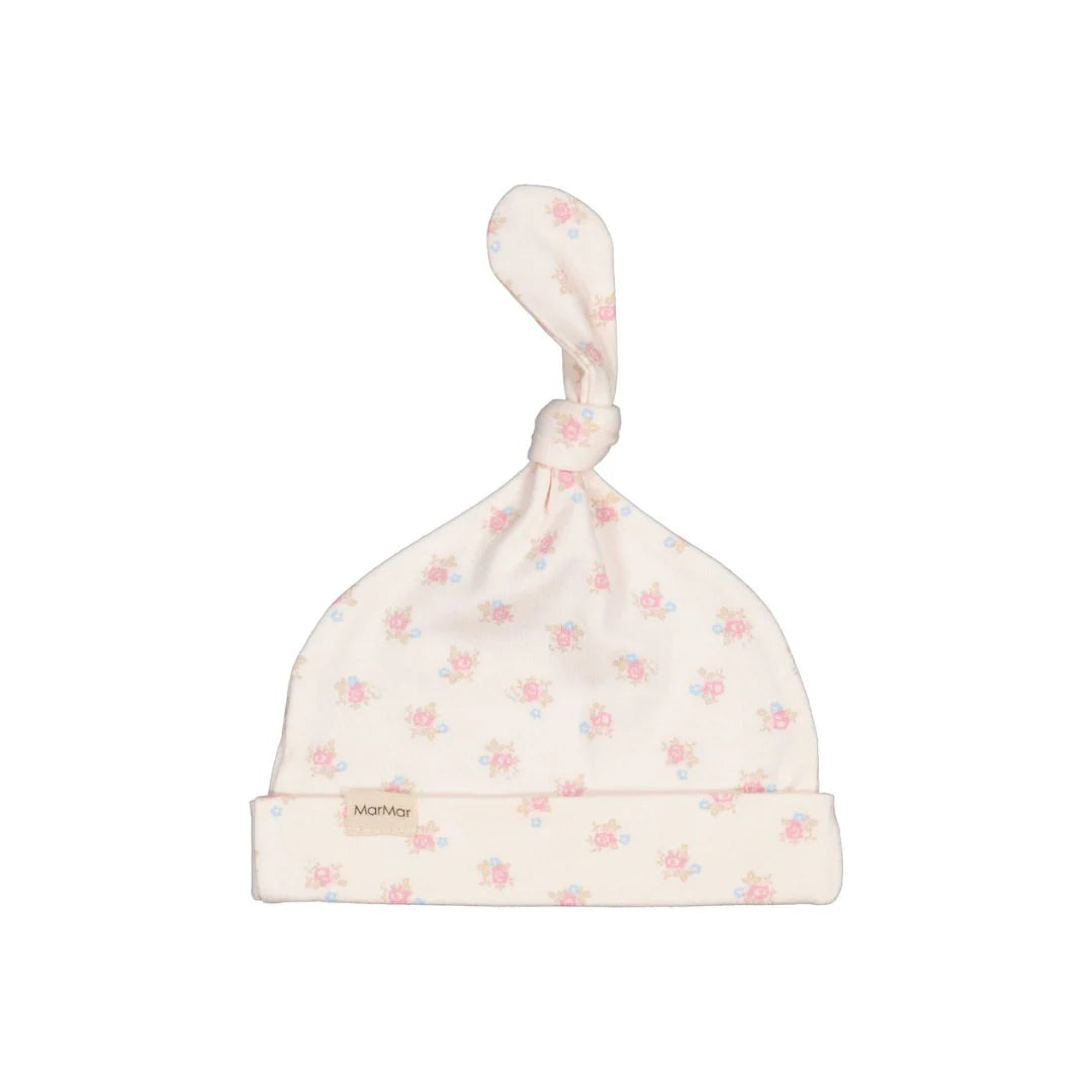 Small hat for the little ones with an edge that can be folded down and a cute knot on the top.