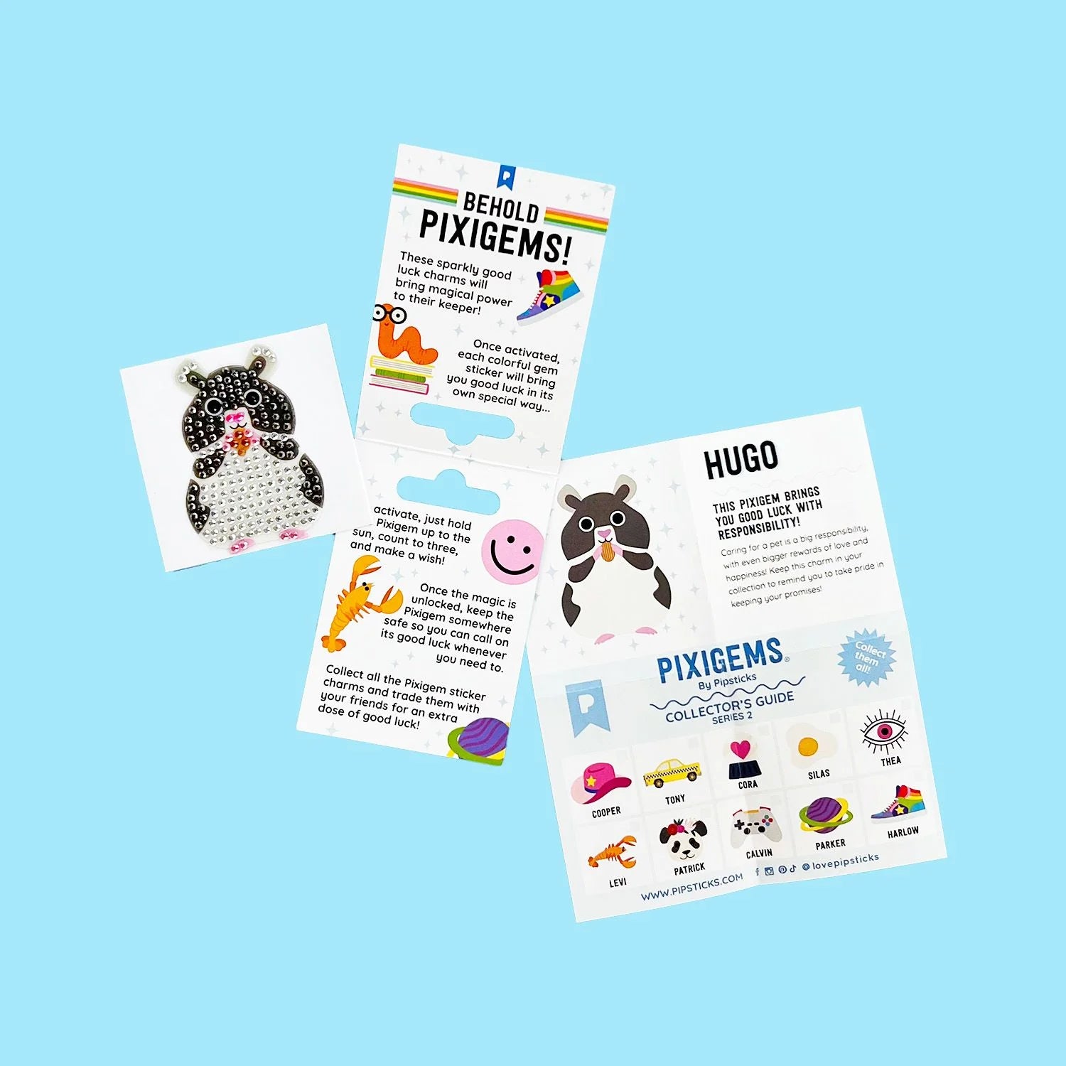 Includes one 2" x 2" Hugo Hamster Pixigem sticker & collectors card to uncover it's special power.