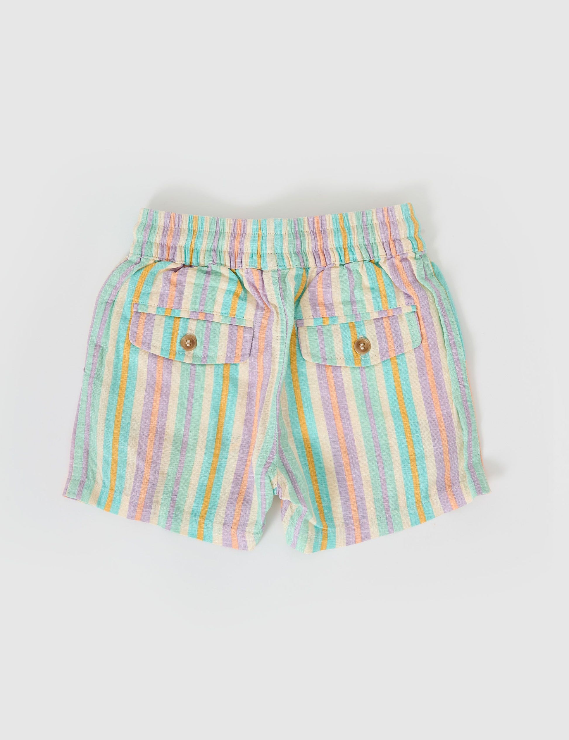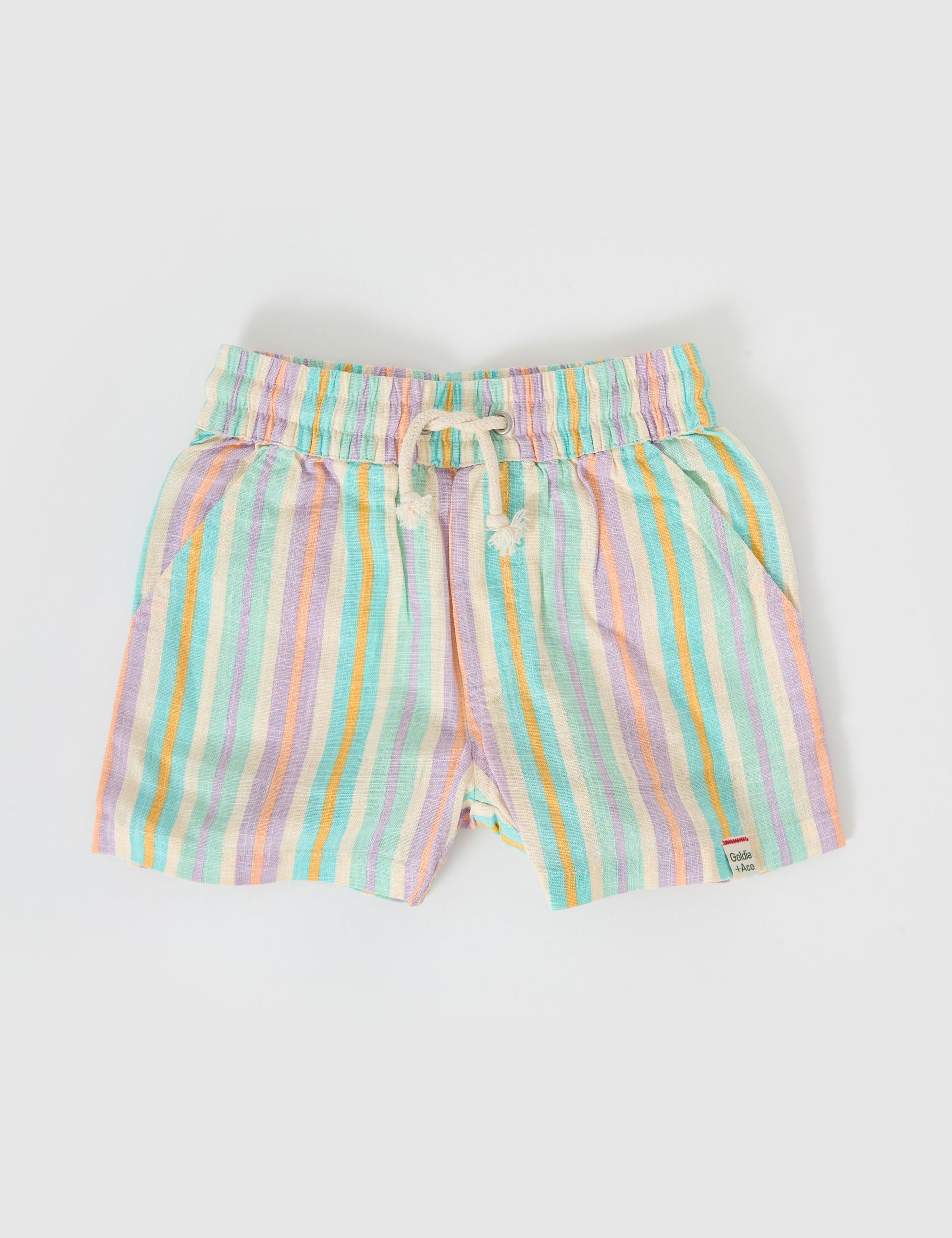 These colorful, striped shorts from Goldie + Ace ensure your little one is comfy for all of her summer adventures! They feature a drawstring waist, side pockets, and flap pockets at the back.