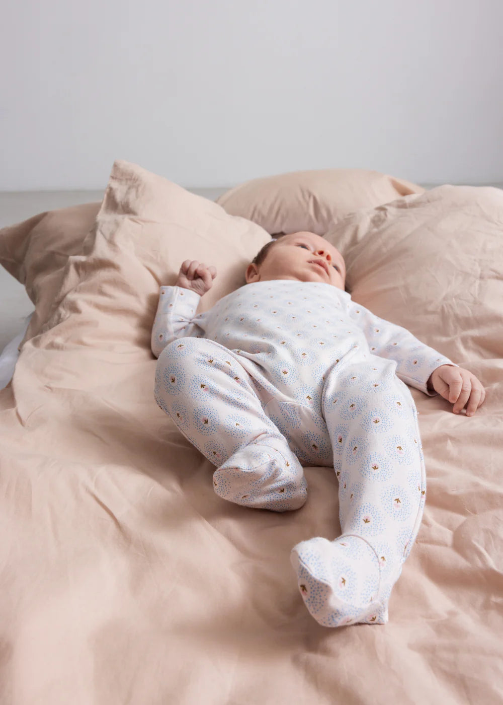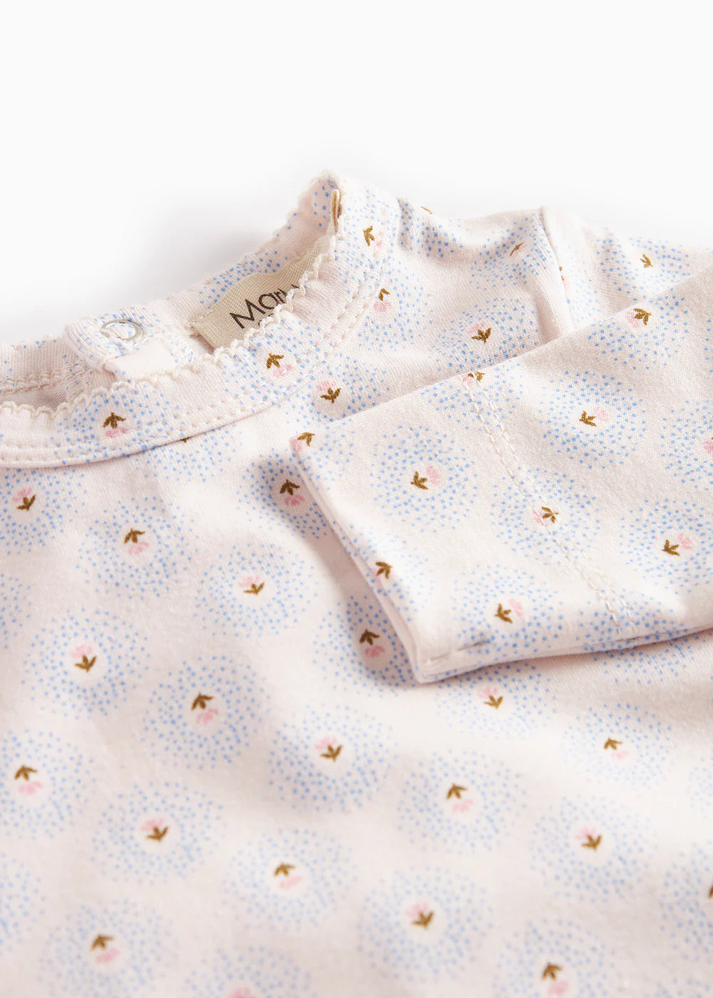 Long-sleeved onesie with feet for the little ones with snaps at the back for easy diaper changes. The onesie has a nice print and is soft, stretchy and comfortable to wear.