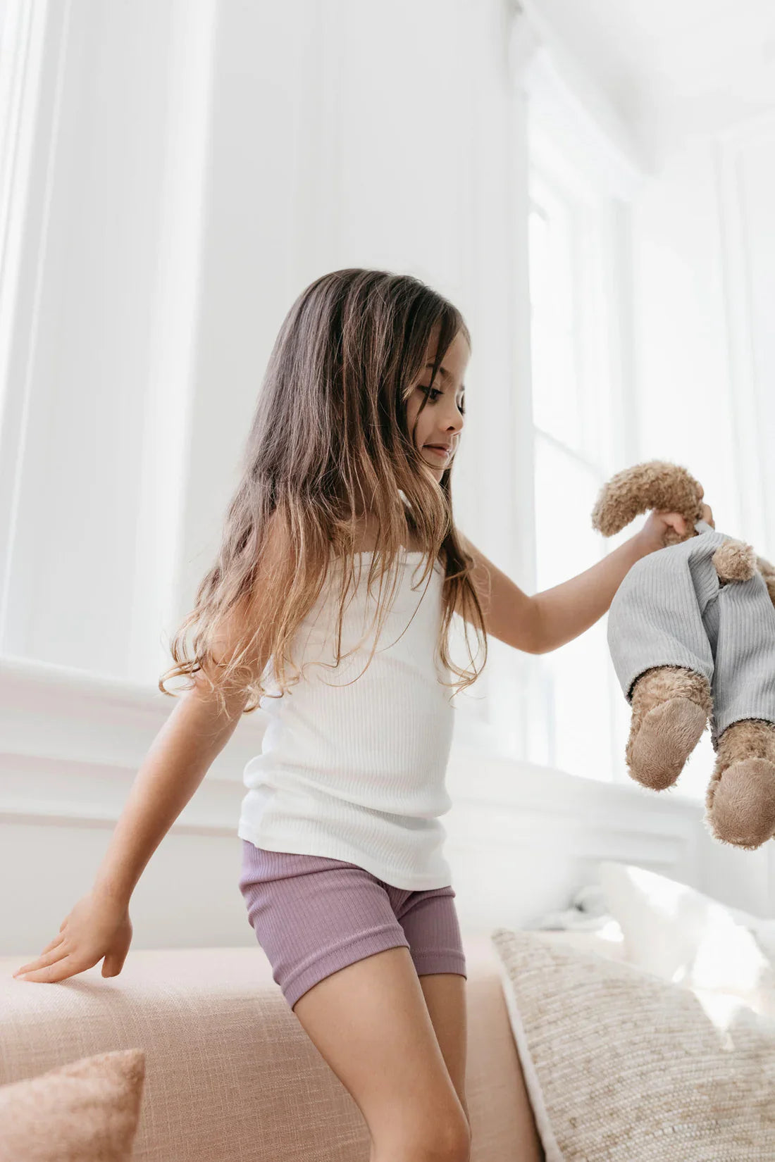 This gorgeous blend is the perfect combination of soft, lightweight, and stretchy. Modal is an extremely forgiving fabrication; it maintains elasticity and is incredibly stain, pill and shrink resistant. Your little one will be super comfortable in this beautifully versatile singlet.