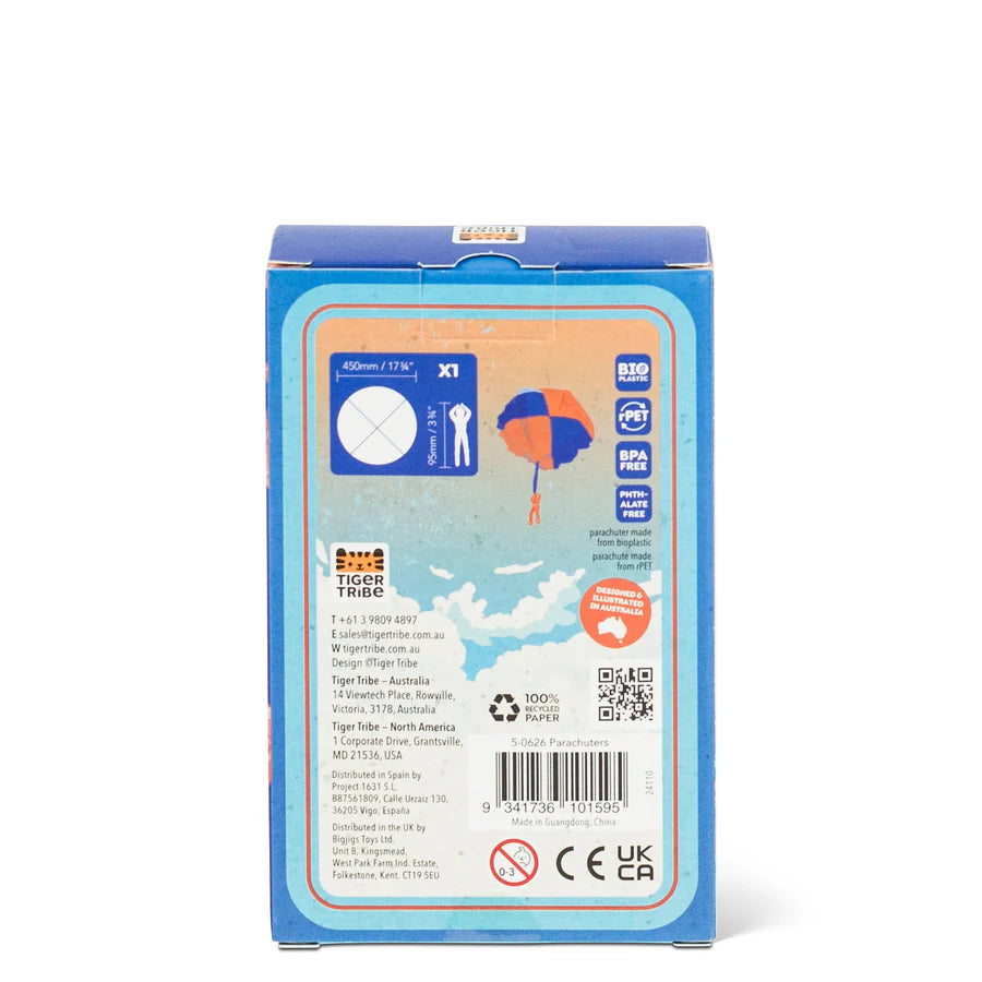 Parachuters is part of our new Eco range, with bioplastic Parachuter, recycled RPET parachute and packaging made of 100% recycled paper.