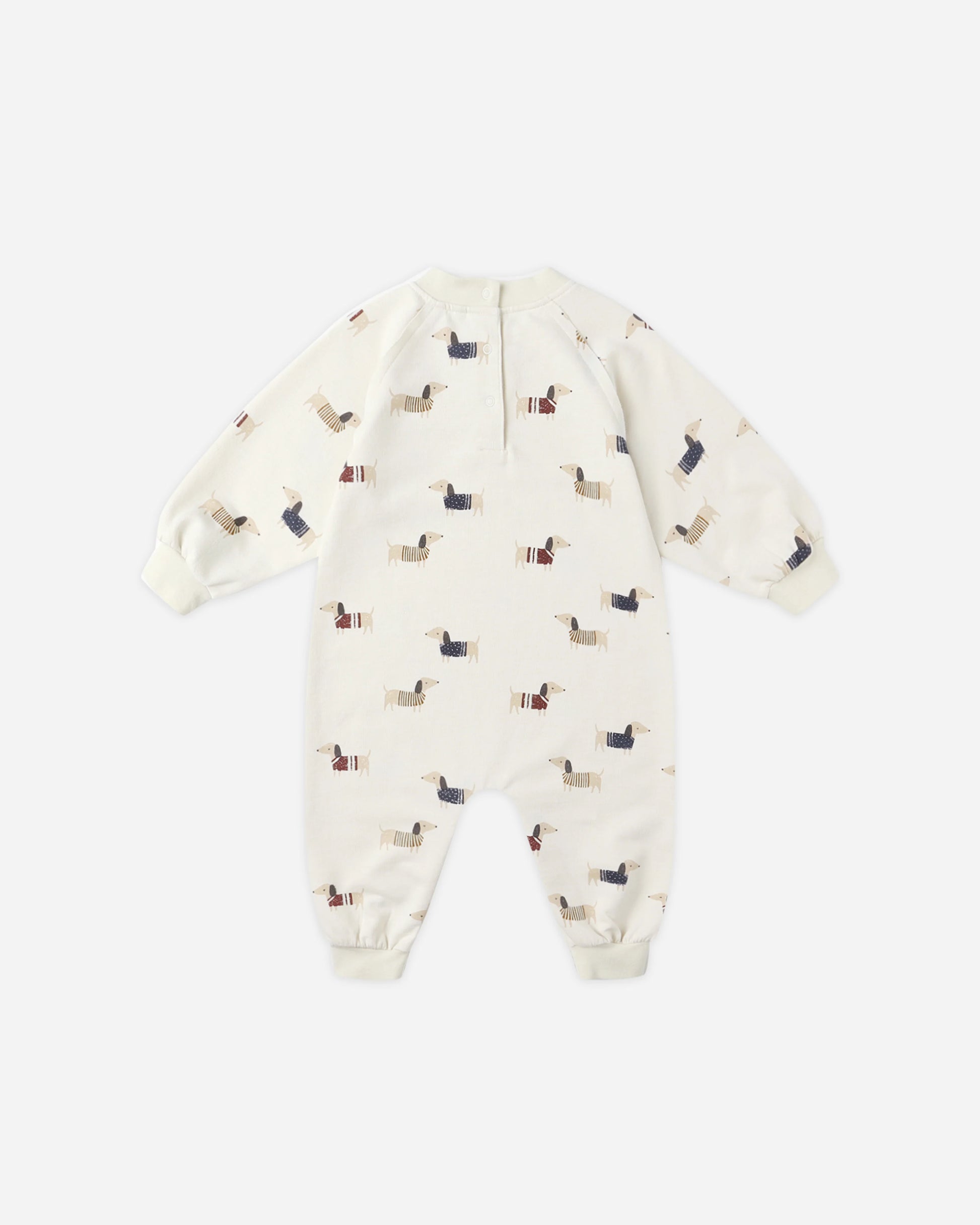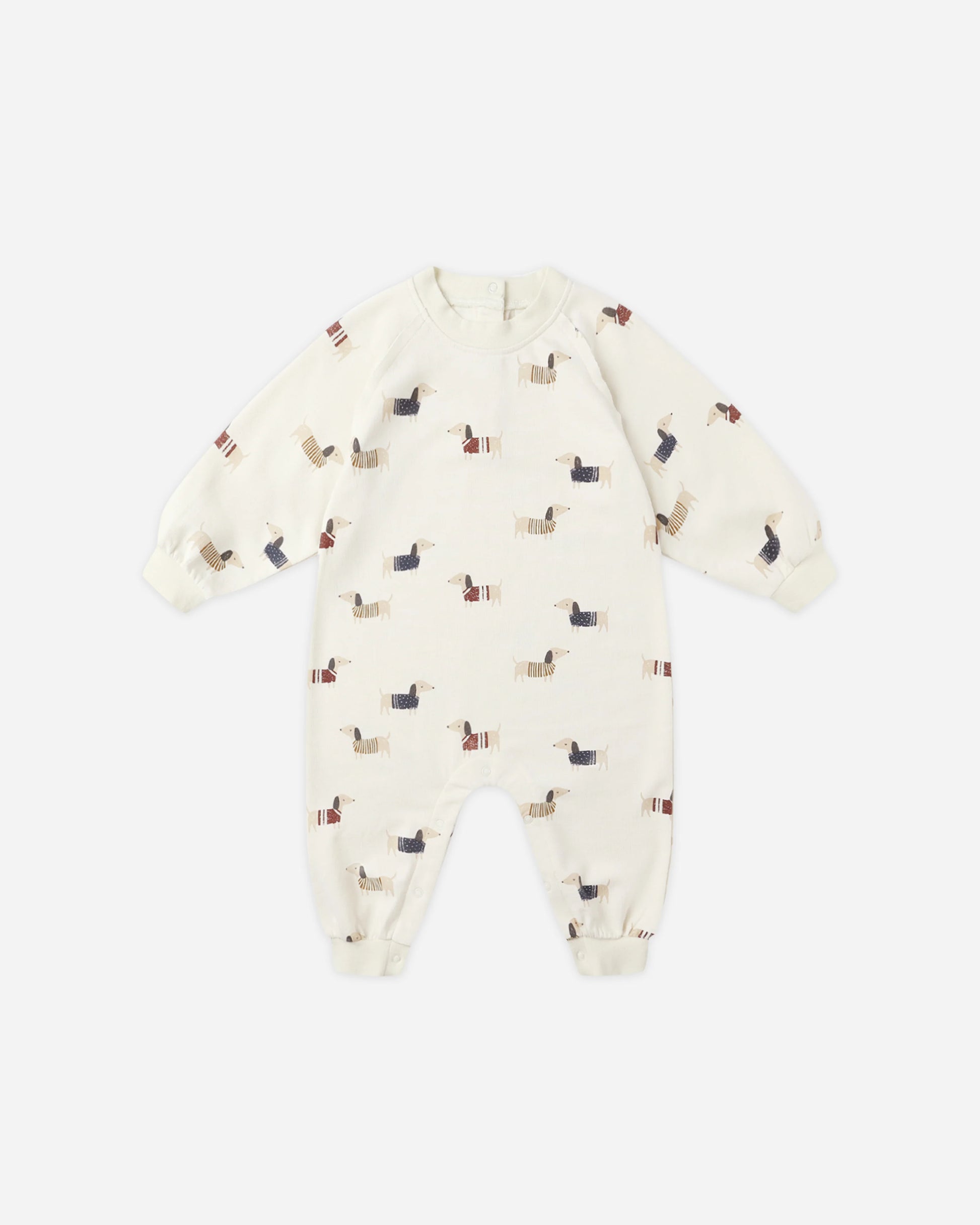 Crafted from soft French terry, this long sleeve bubble romper is as cozy as it is cute, featuring elastic leg openings and bottom snaps for a snug fit and easy changes.