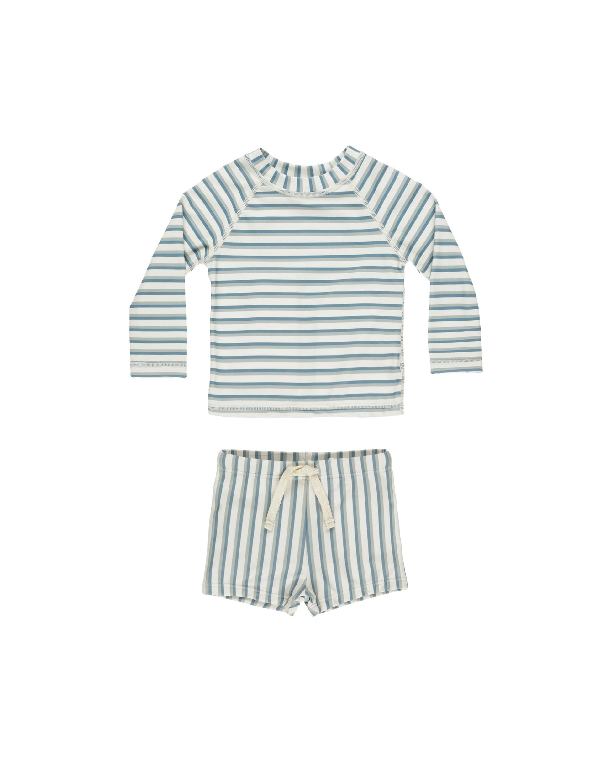 This two-piece rashguard set will have your little one protected from the sun in style. Featuring a long sleeve rashguard top and coordinating swim short bottoms with an adjustable drawstring.