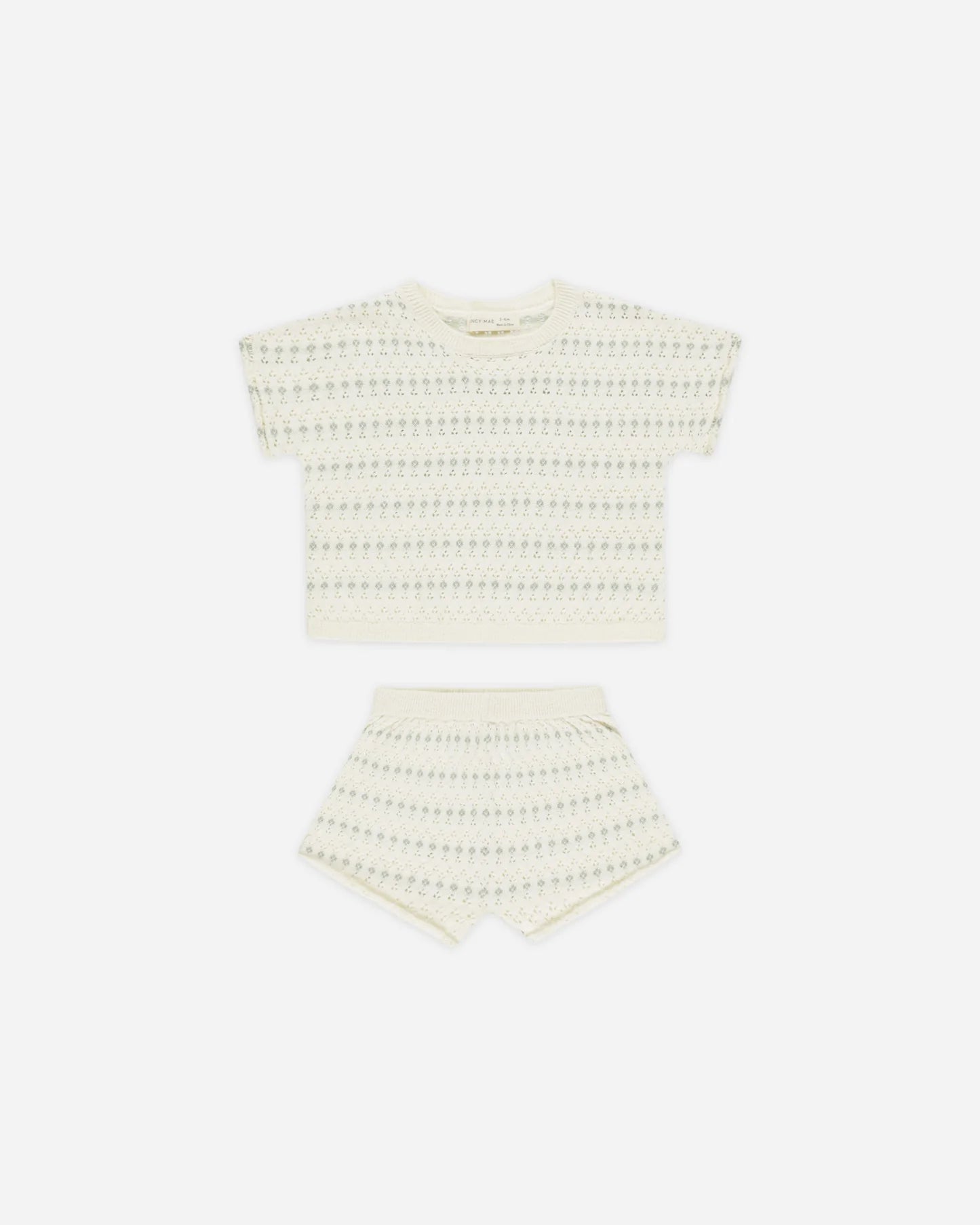 Featuring our 'ivory' and 'mint' hues on our pointelle novelty knit.