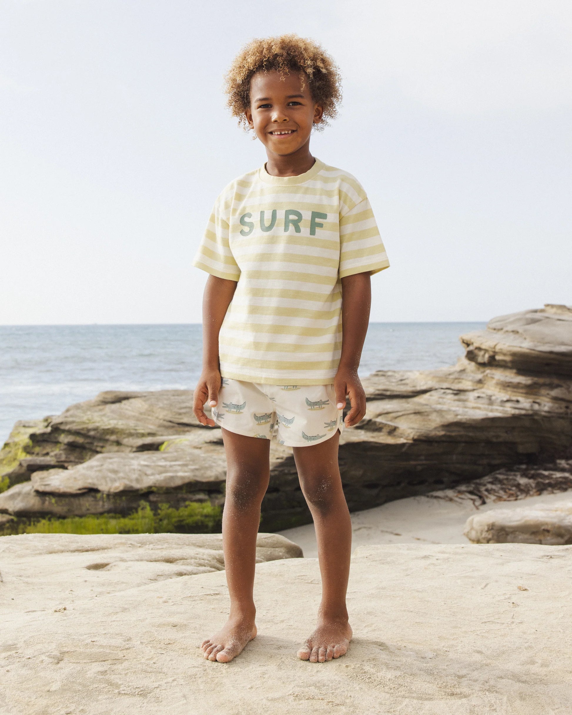 Featuring our 'surf' spot print on our 'citron stripe' hue. Live the sweet life in this cool look.