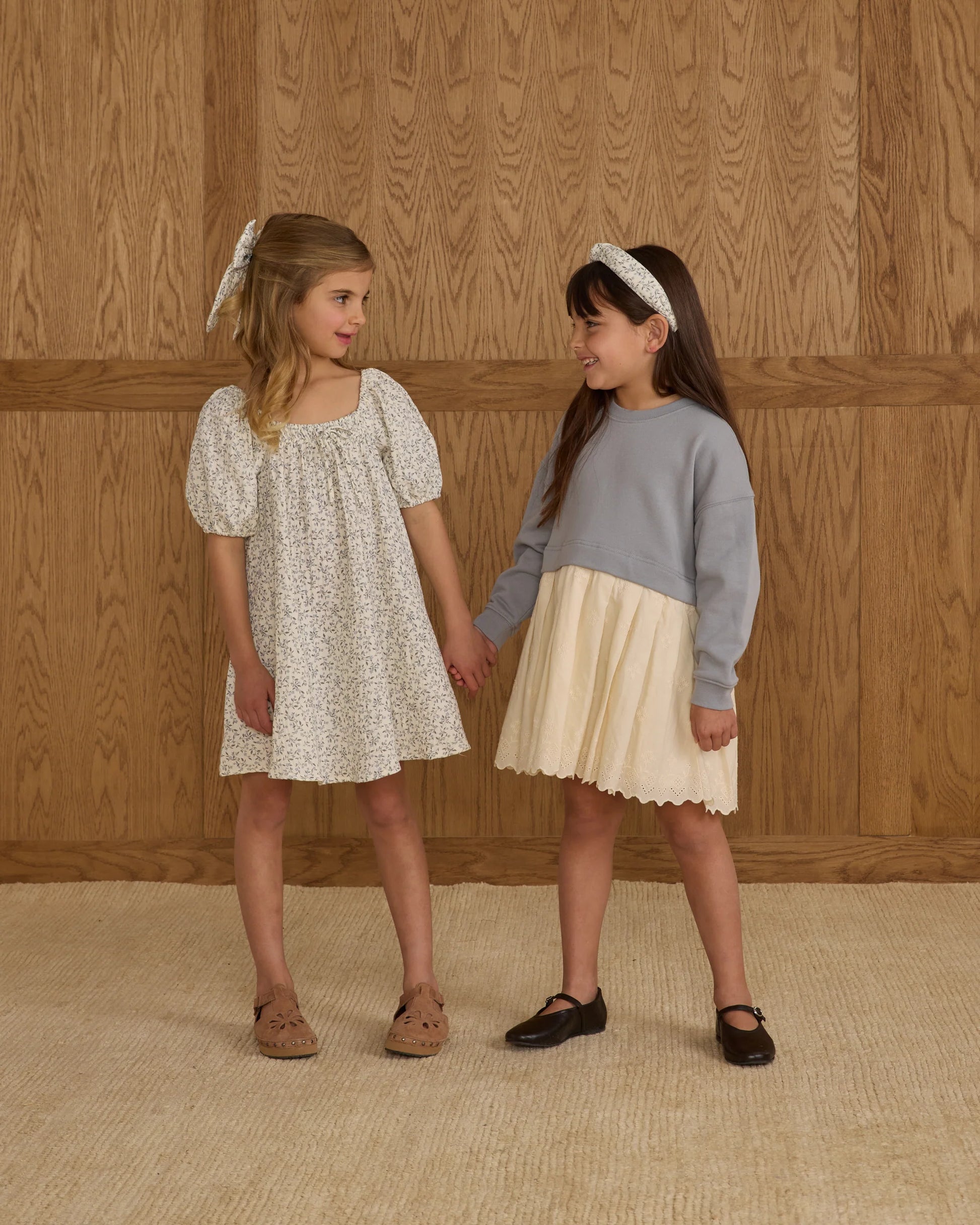 Our Sabrina Mini Dress features smocking at the neckline, a full gathered silhouette, balloon sleeves, and a fixed bow for a sweet finishing touch.