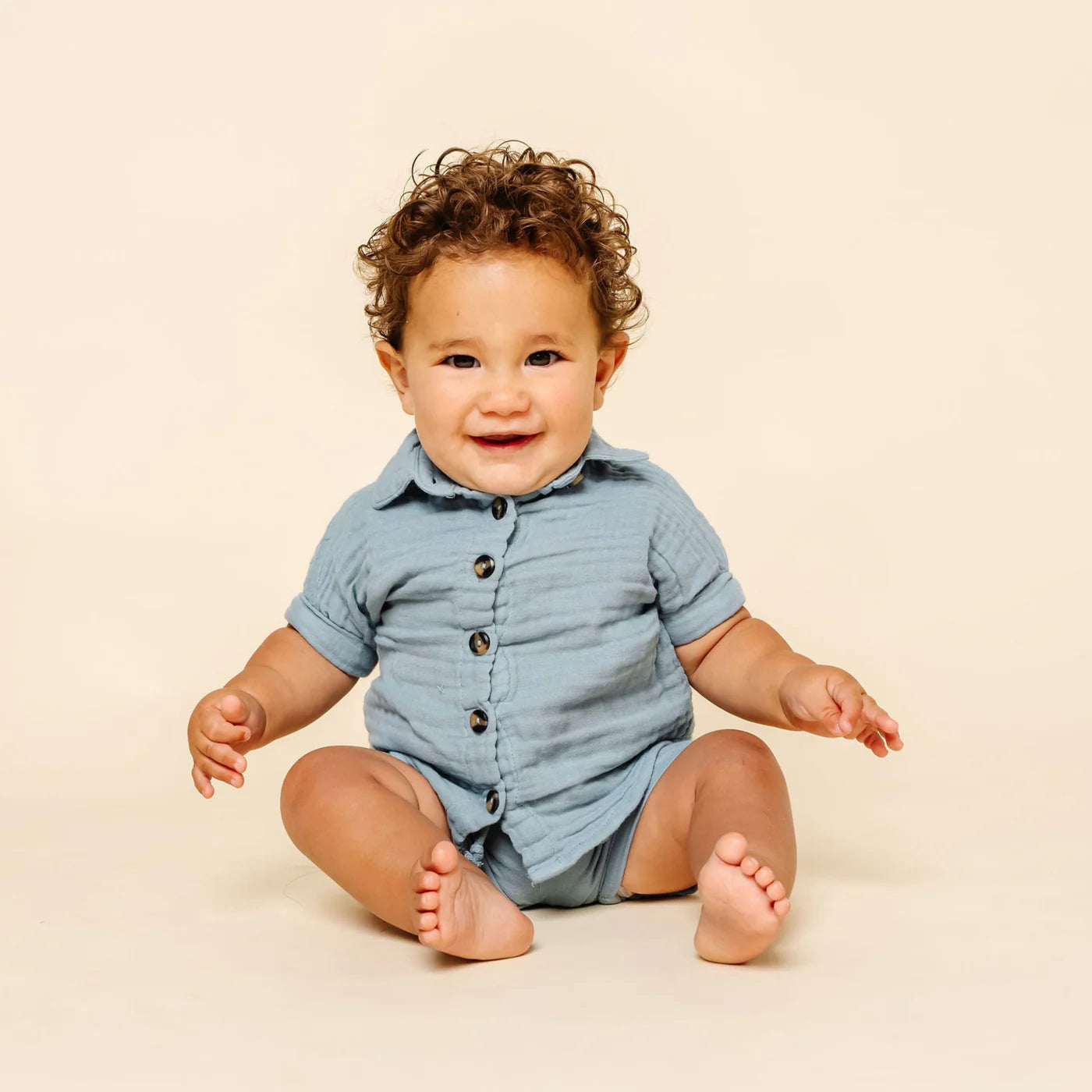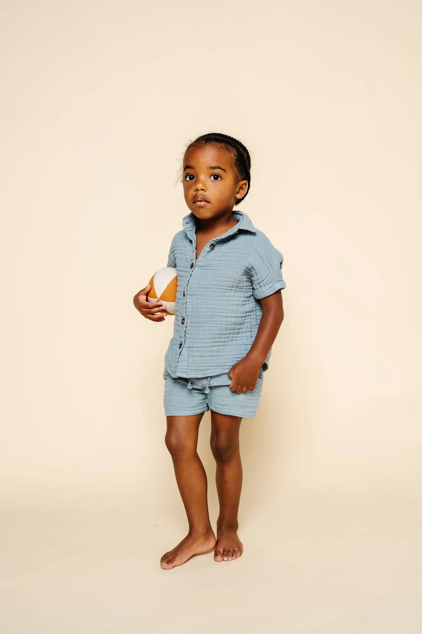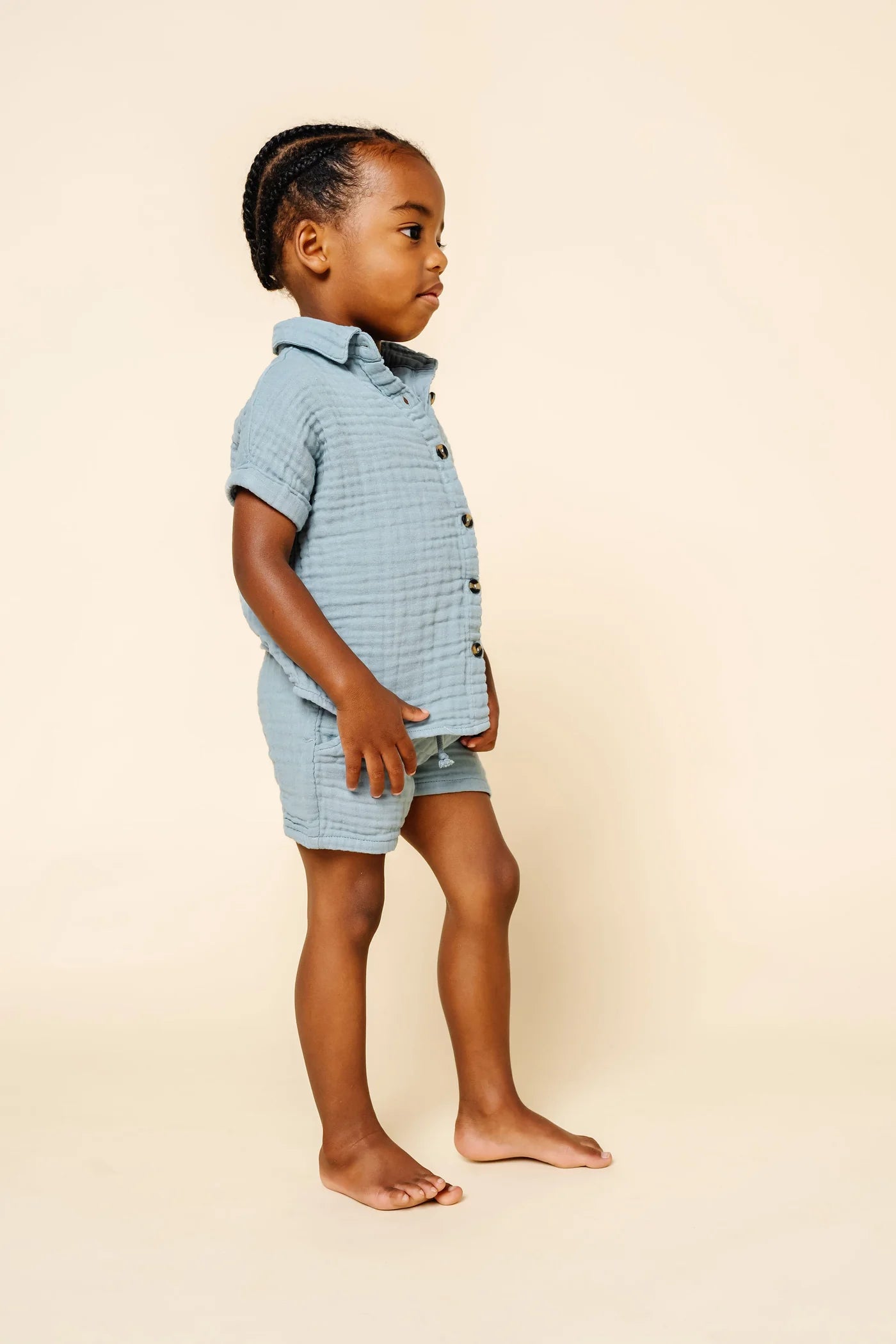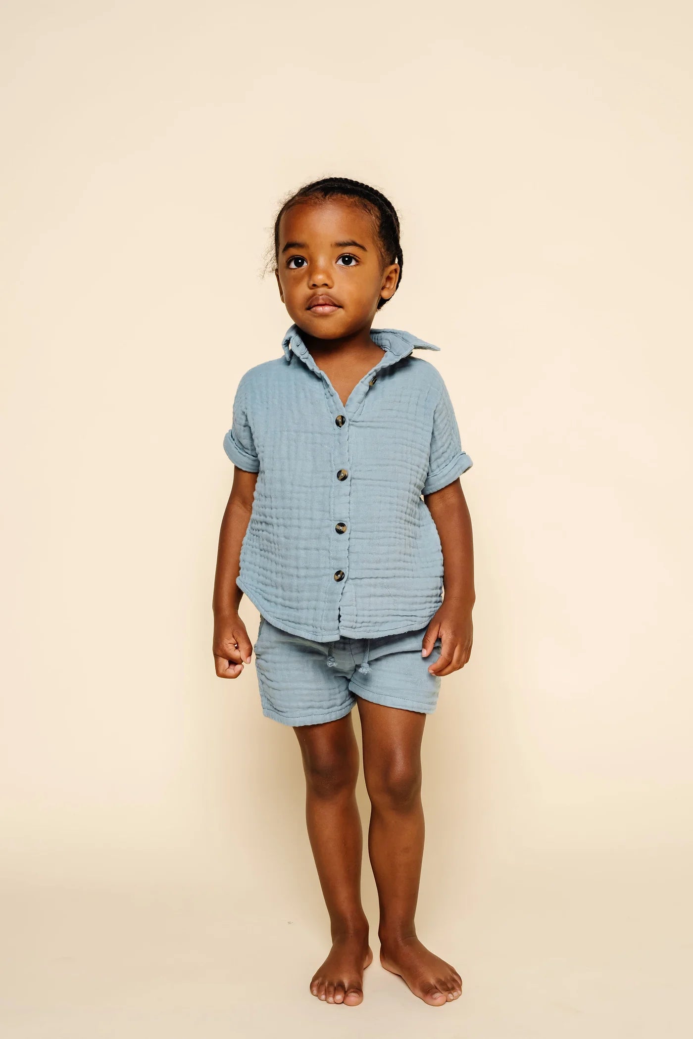 Our Cloud Muslin™ Shirt is made from three layers of ultra-soft cotton muslin. The button-up design offers a relaxed, versatile fit, perfect for play or dressing up, and pairs sweetly with matching Lou Lou shorts.
