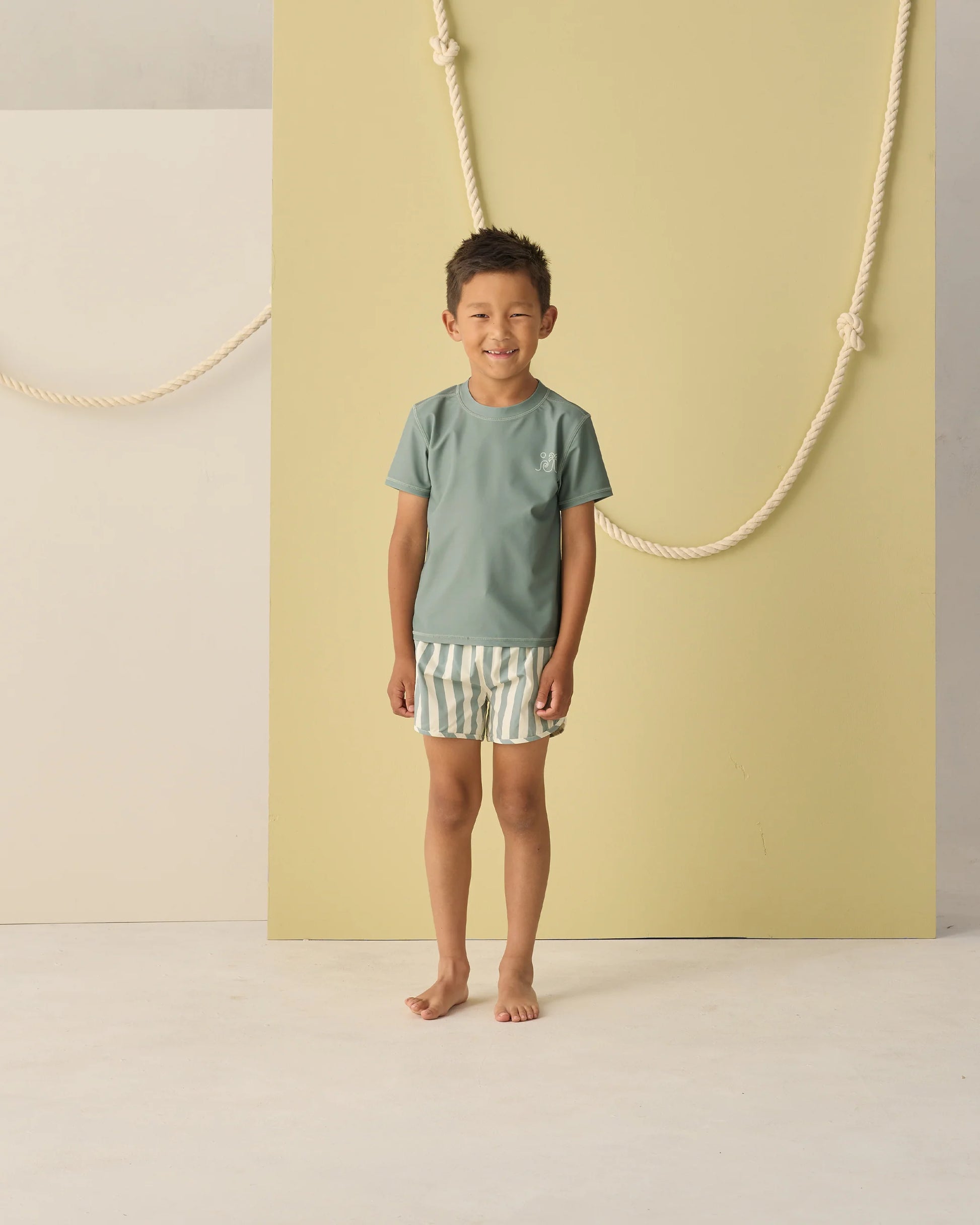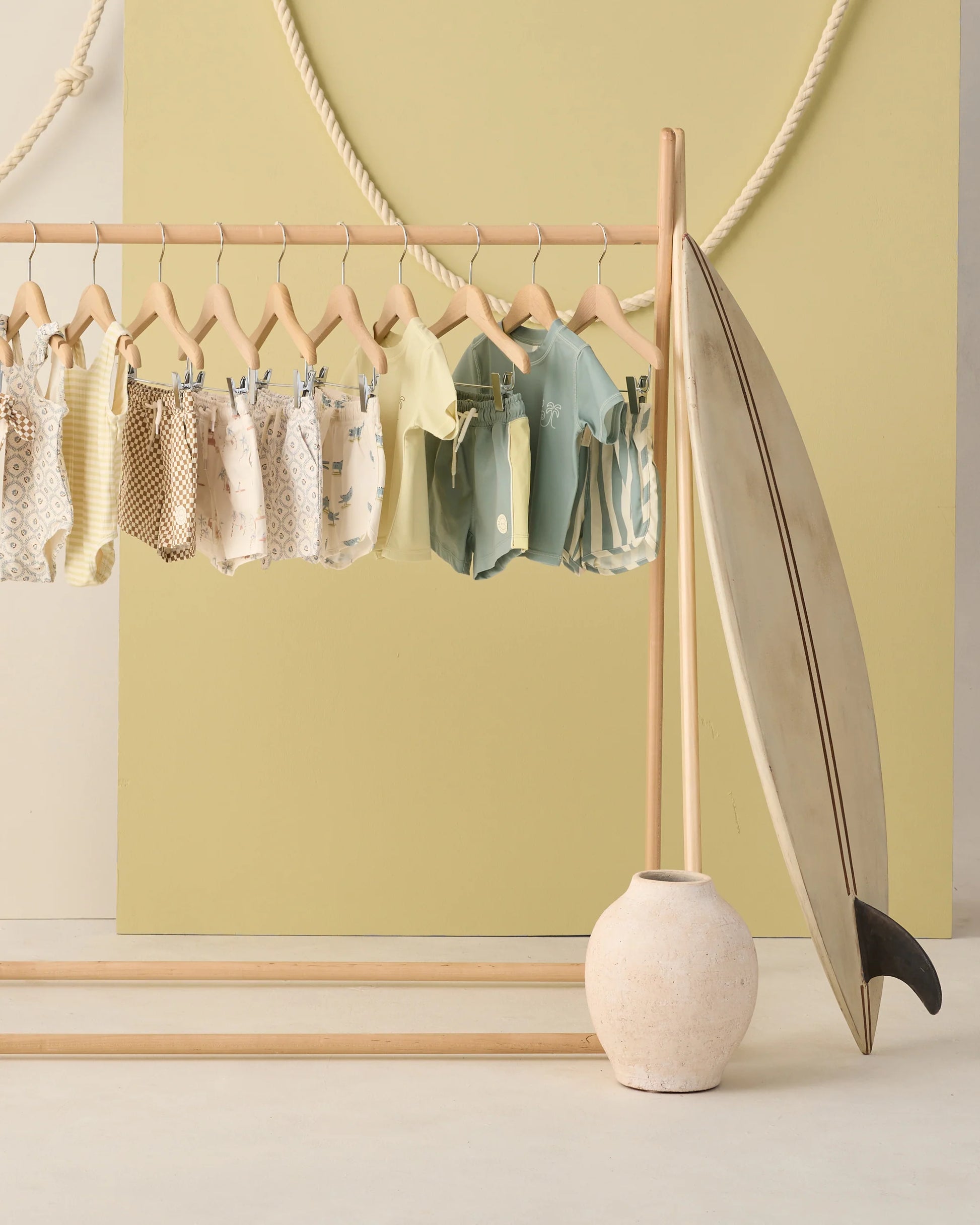 Featuring our 'green stripe' hue. This fun retro print will bounce you right into summer.