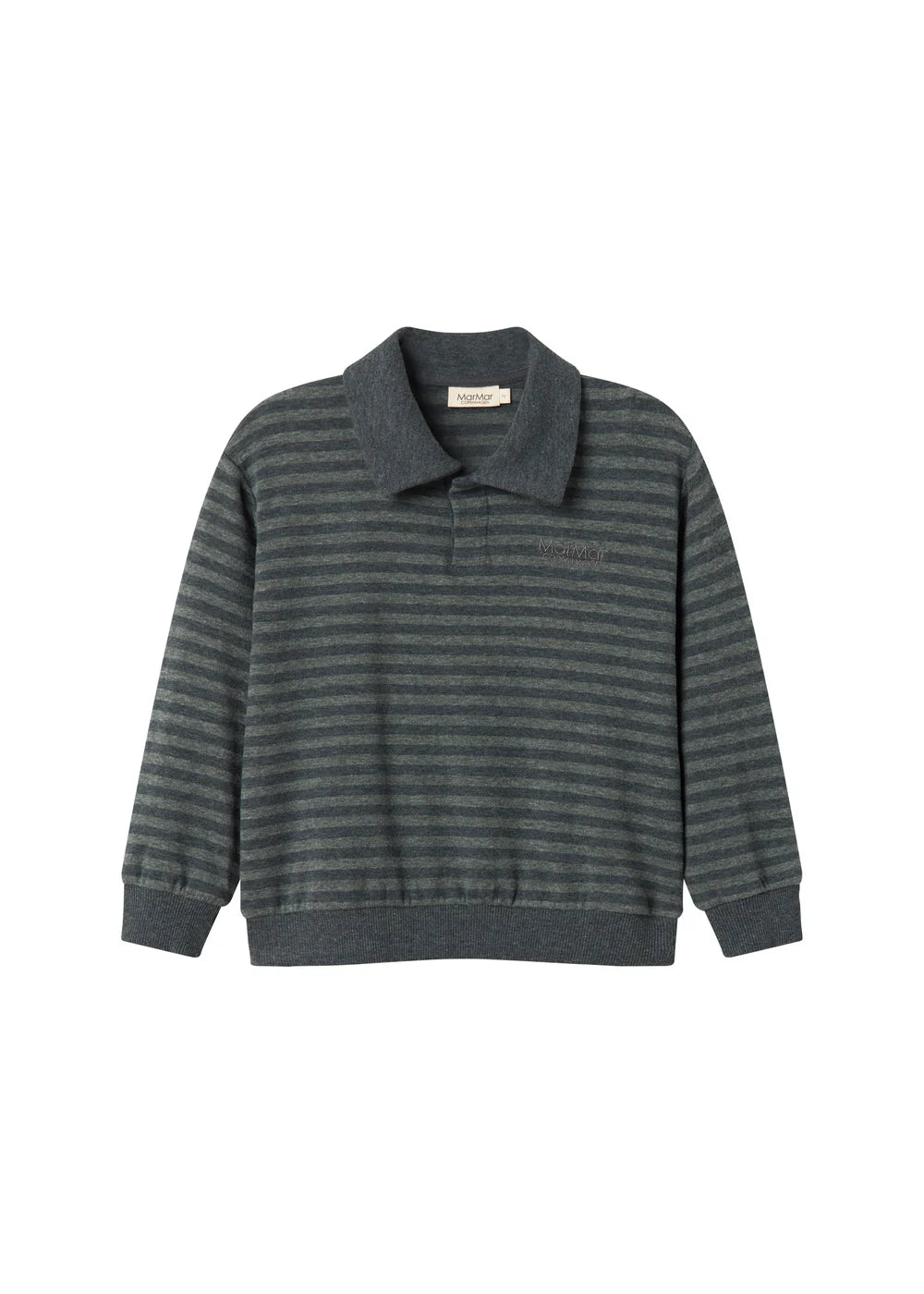 Soft sweat polo with small collar, logo embroidery and ribbing on sleeves and around the waist. The sweat polo is very soft and comfortable to wear.