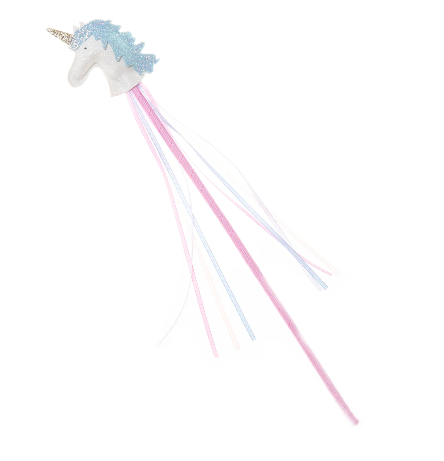 We believe in unicorns - and so can you! In an gorgeous glitter fabric adorned with beautiful colored ribbon streamers, this is the perfect wans for magical spells, imagination adventures, or a fun addition to the dressing up box!
